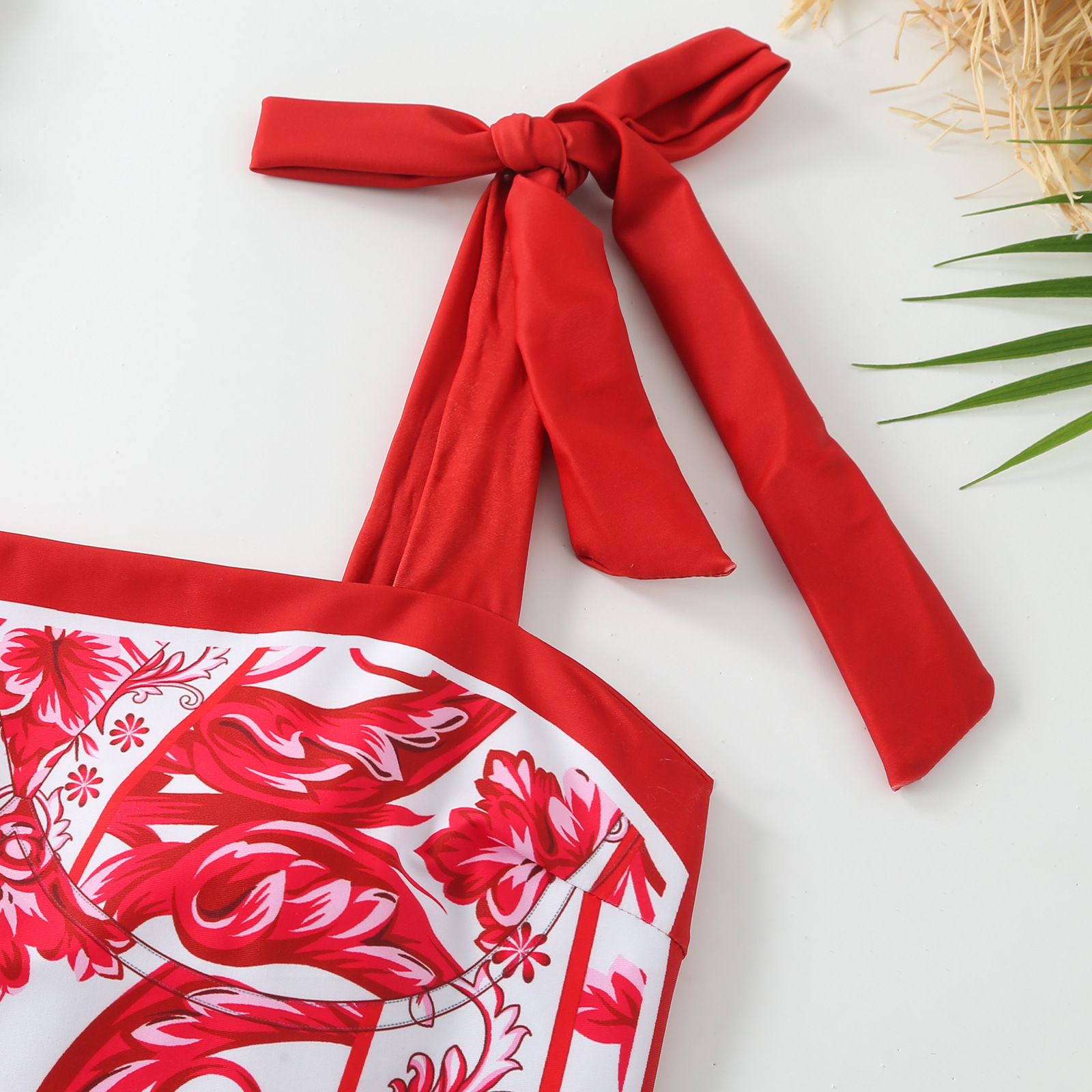 국경 간 대외 무역 유럽과 미국의 섹시한 컬러 인쇄 유행 간단한 기질 백리스 슬리밍 배꼽 커버 원피스 수영복