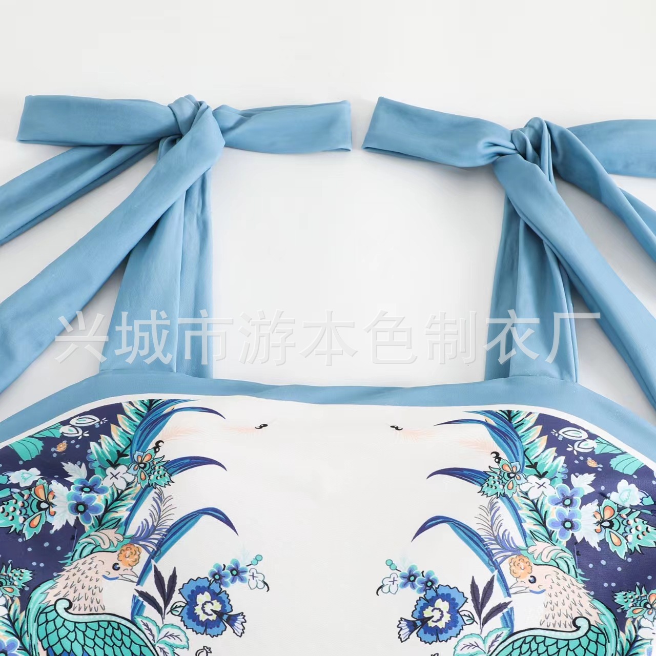 국경 간 대외 무역 유럽과 미국의 섹시한 컬러 인쇄 유행 간단한 기질 백리스 슬리밍 배꼽 커버 원피스 수영복스토어 가기