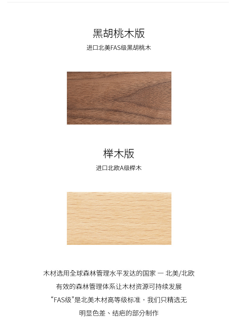 产品材质:实木(榉木/黑胡桃木)