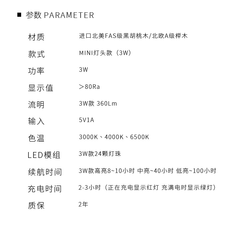 灯光功率:4W LED