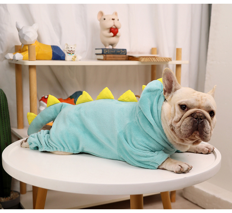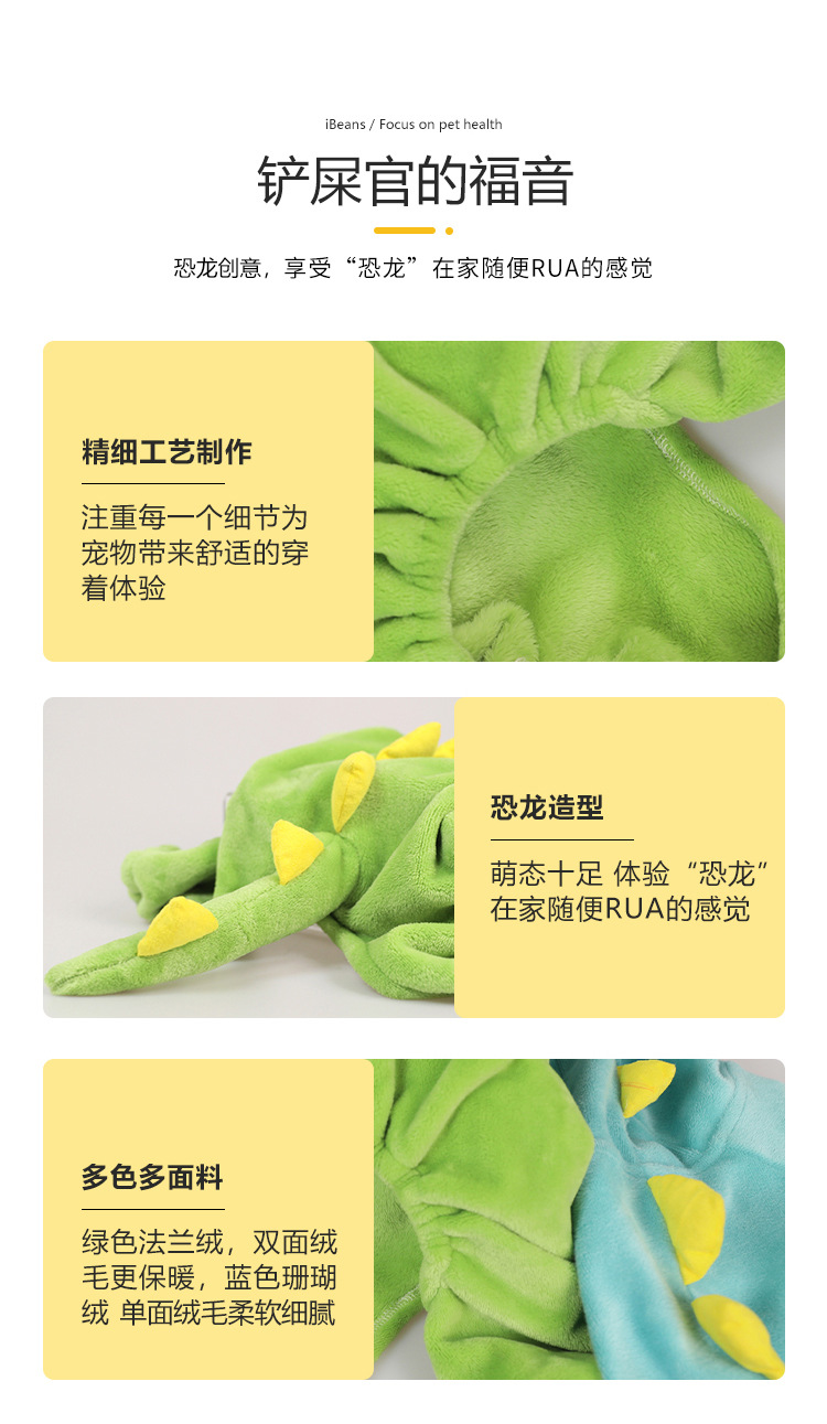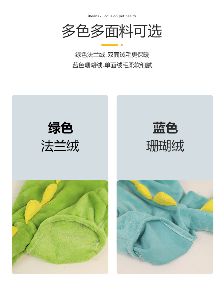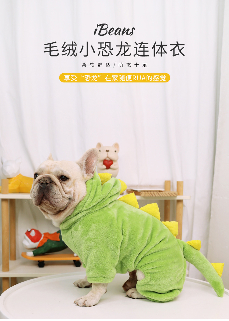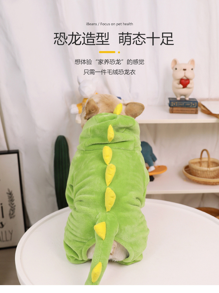 IBEANS 플란넬 공룡 잠옷 애완 동물 고양이와 개 네 다리 점프 수트 가을과 겨울 두꺼운 귀여운 변형 의류스토어 가기