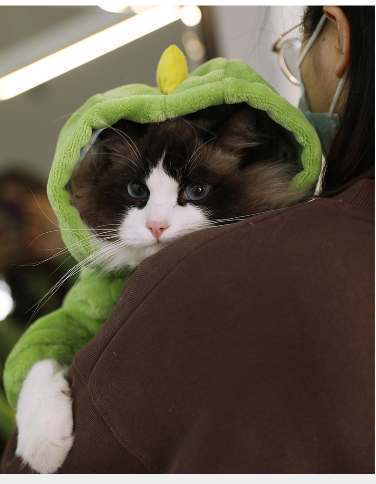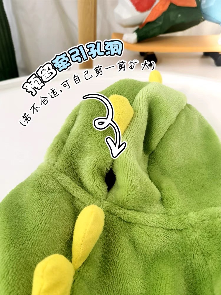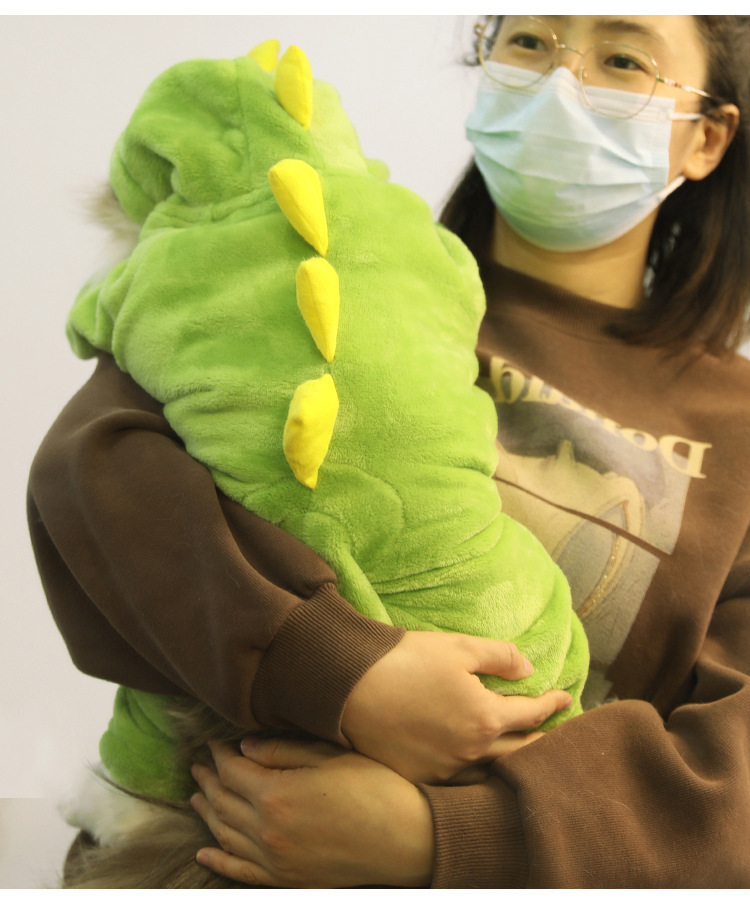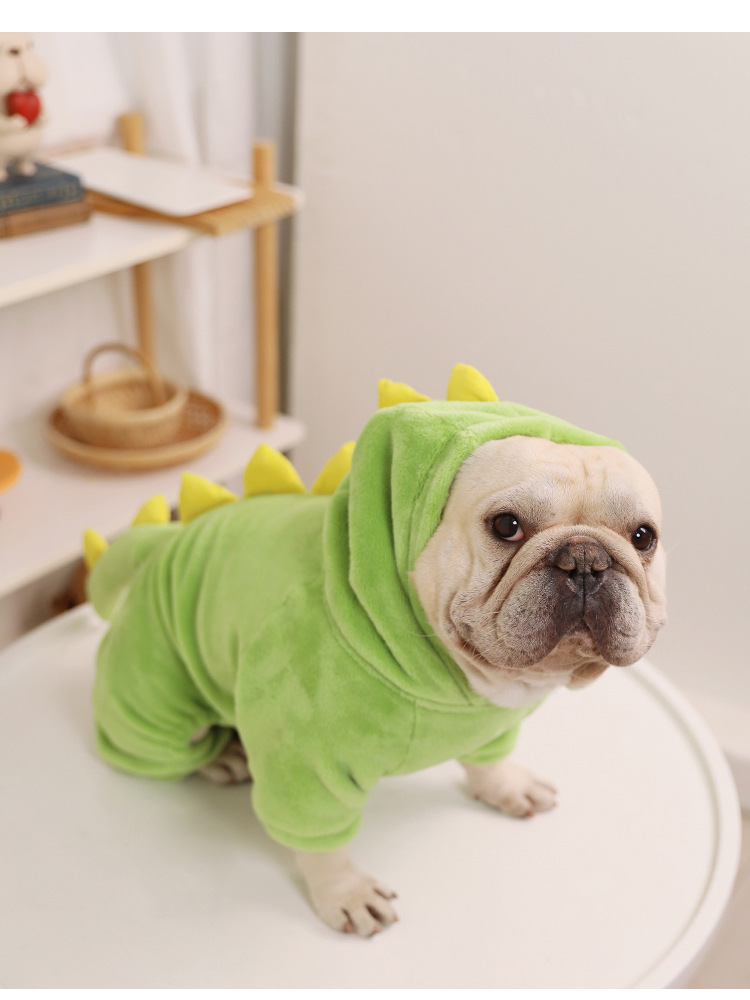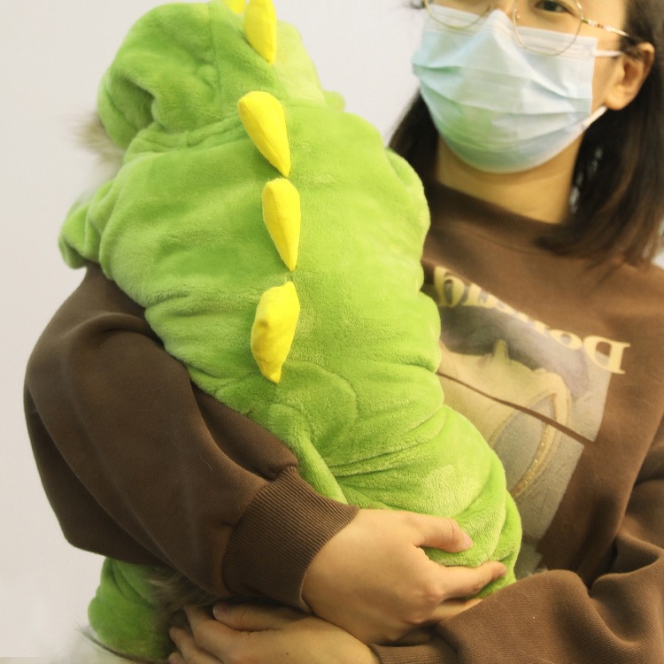 IBEANS 플란넬 공룡 잠옷 애완 동물 고양이와 개 네 다리 점프 수트 가을과 겨울 두꺼운 귀여운 변형 의류스토어 가기