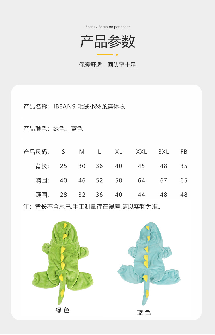 IBEANS 플란넬 공룡 잠옷 애완 동물 고양이와 개 네 다리 점프 수트 가을과 겨울 두꺼운 귀여운 변형 의류