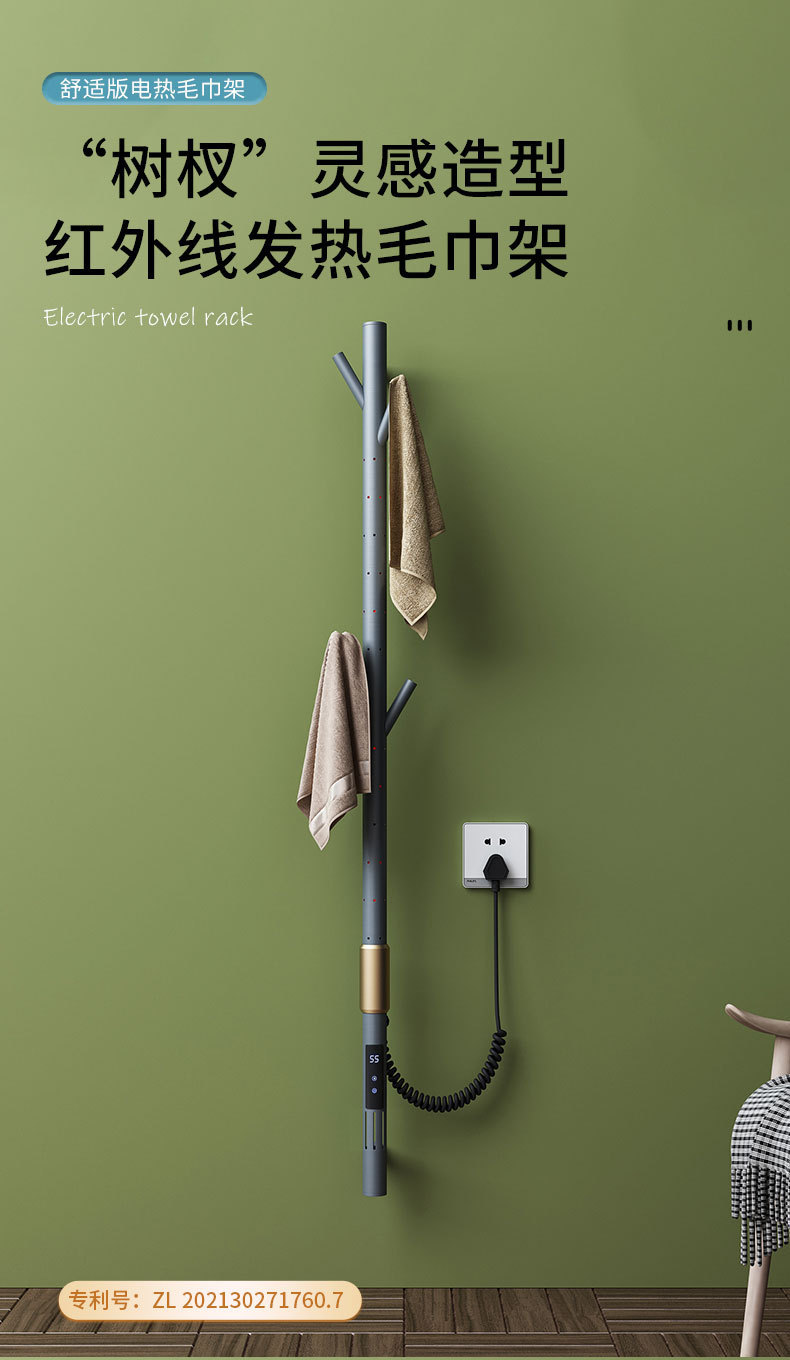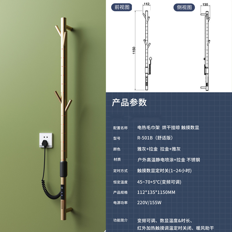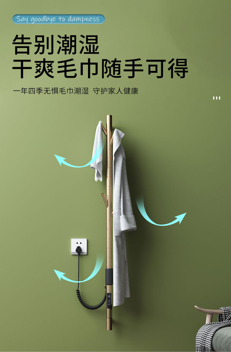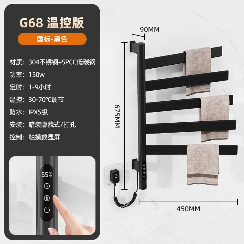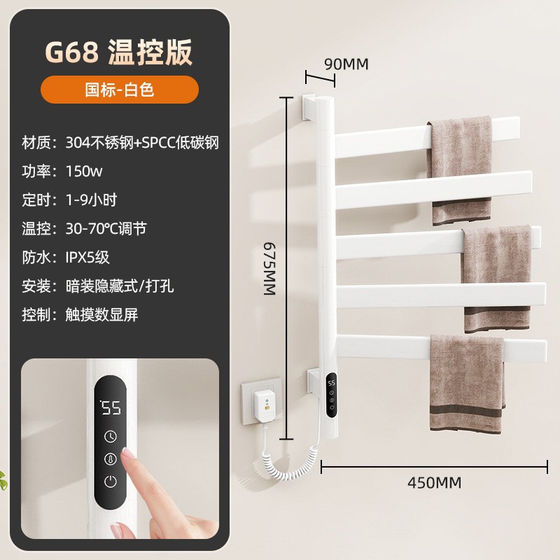 간단한 수직 바 전기 수건 랙 행거 숨겨진 내장 벽 욕실 목욕 수건 목욕 가운 건조 가열 막대스토어 가기