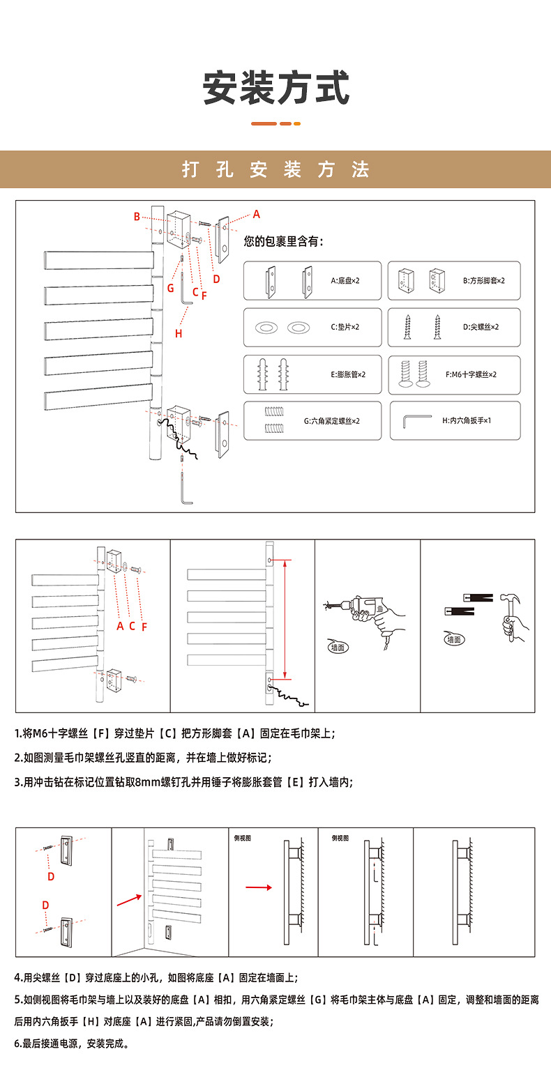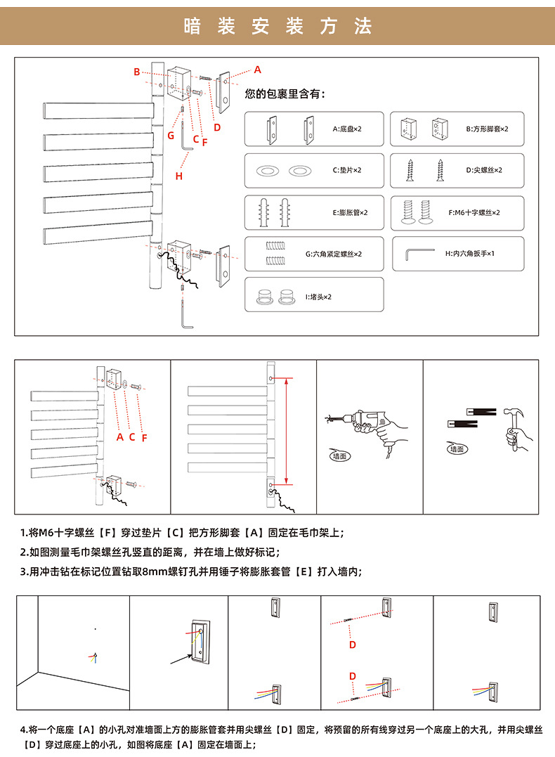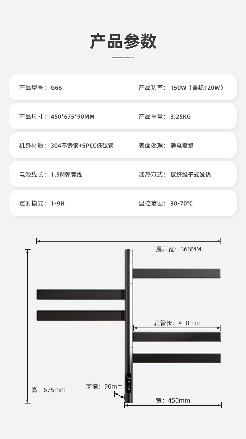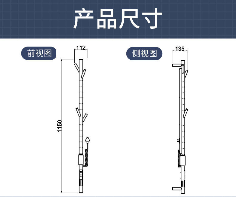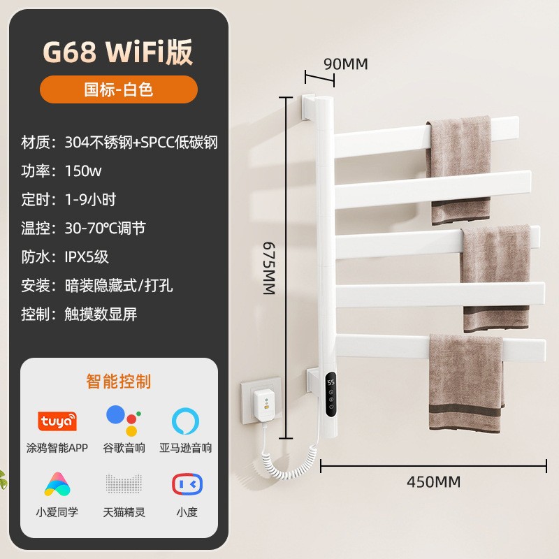간단한 수직 바 전기 수건 랙 행거 숨겨진 내장 벽 욕실 목욕 수건 목욕 가운 건조 가열 막대스토어 가기