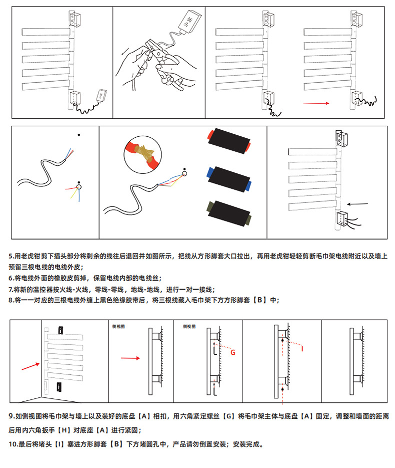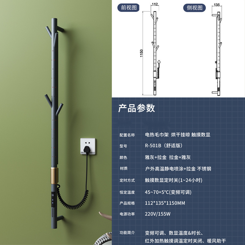 간단한 수직 바 전기 수건 랙 행거 숨겨진 내장 벽 욕실 목욕 수건 목욕 가운 건조 가열 막대