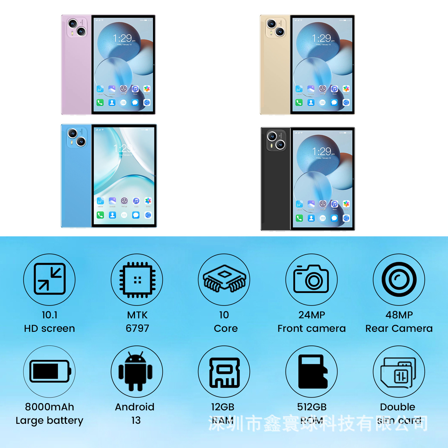 屏幕尺寸:10英寸IPS高清屏(显示屏采用曲线优美的圆角设计, 英寸是显示屏圆角拉伸为直角时的对角线长度)