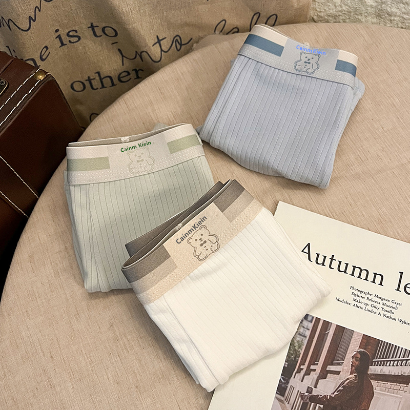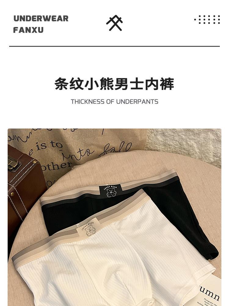 순면 남성 속옷, 남성용 스트라이프 곰돌이 프레시 팬티, 남성용 편안하고 통기성 좋은 사각팬티, 귀여운 사각팬티스토어 가기