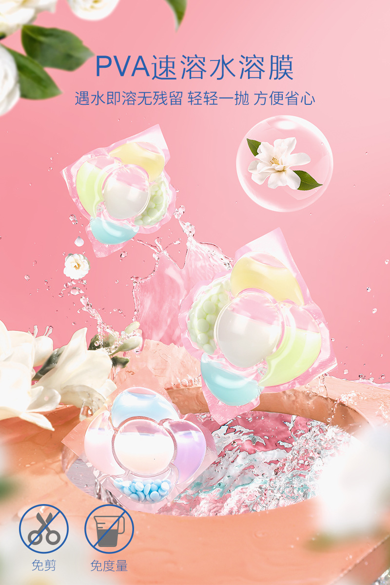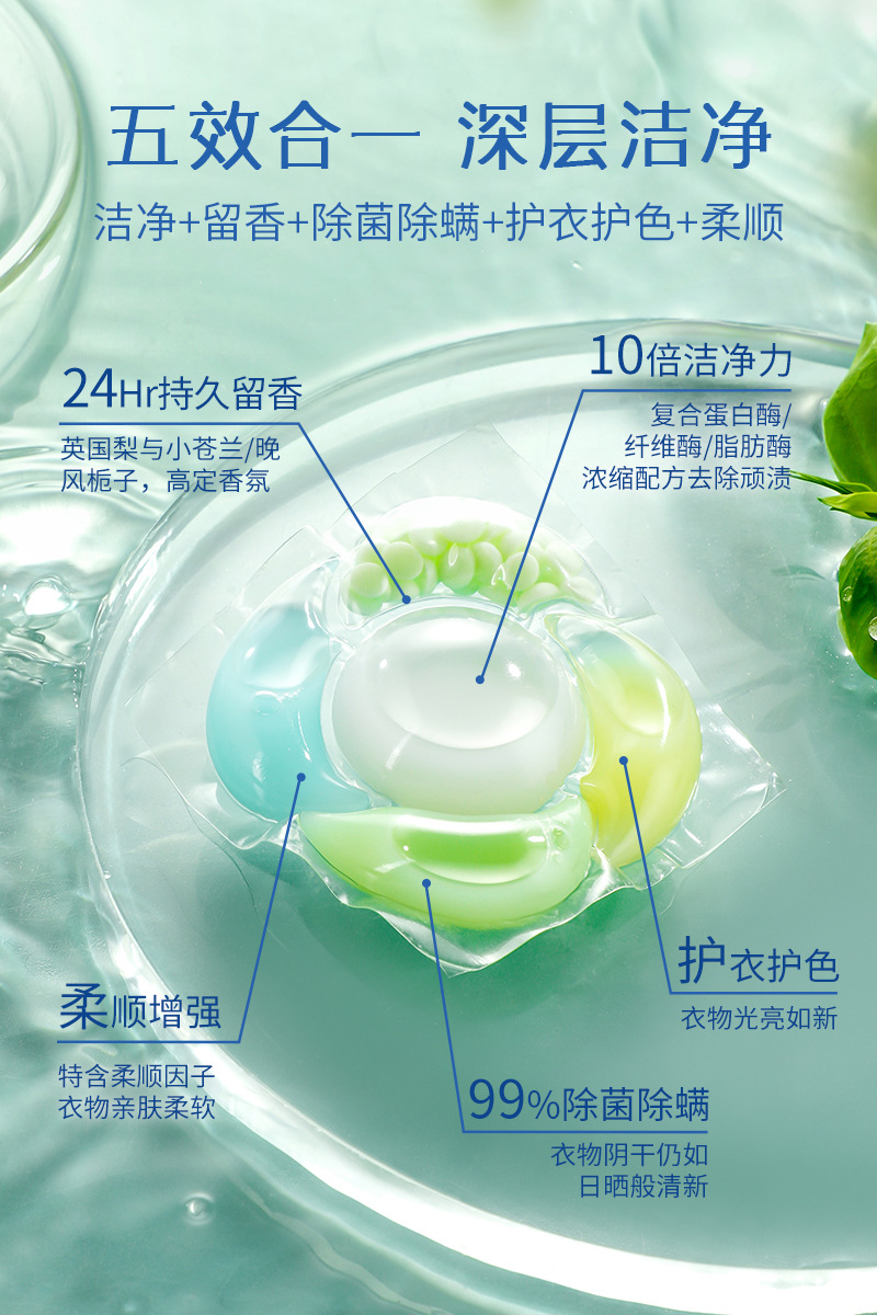 5 개의 캐비티 세탁 젤 구슬 오래 지속되는 향수 유지 구슬 세탁 공 8 배 깨끗한 살균 진드기 제거 멀티 효과 농축 세탁 세제