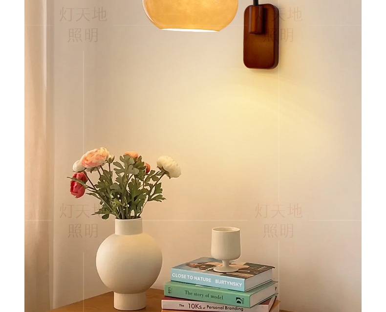한국 스타일의 복고풍 유리 벽 램프 중간 고대 단단한 나무 벽 램프 분위기 장식 B & B 인터넷 유명 인사 벽 침실 침대 옆 램프