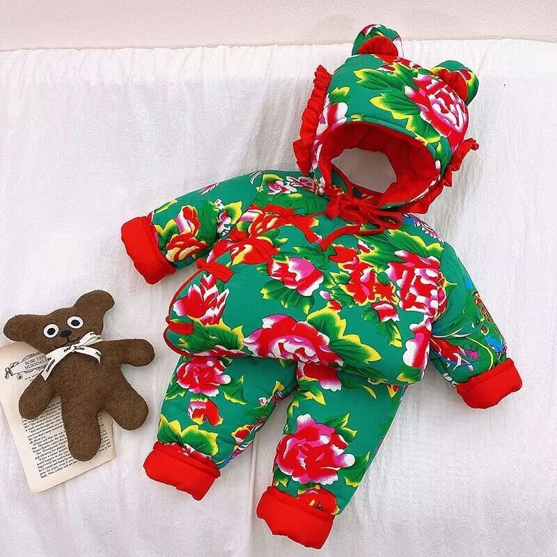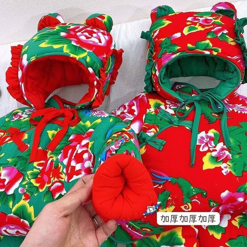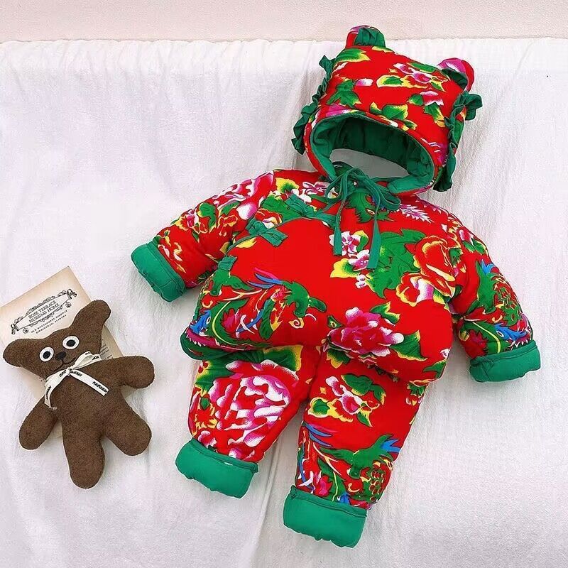 어린이 면화 패딩 의류 세트 22 겨울 새로운 서양식 유아면 패딩 의류가 북동쪽 큰 꽃면 패딩 재킷을 두껍게 만들었습니다.스토어 가기