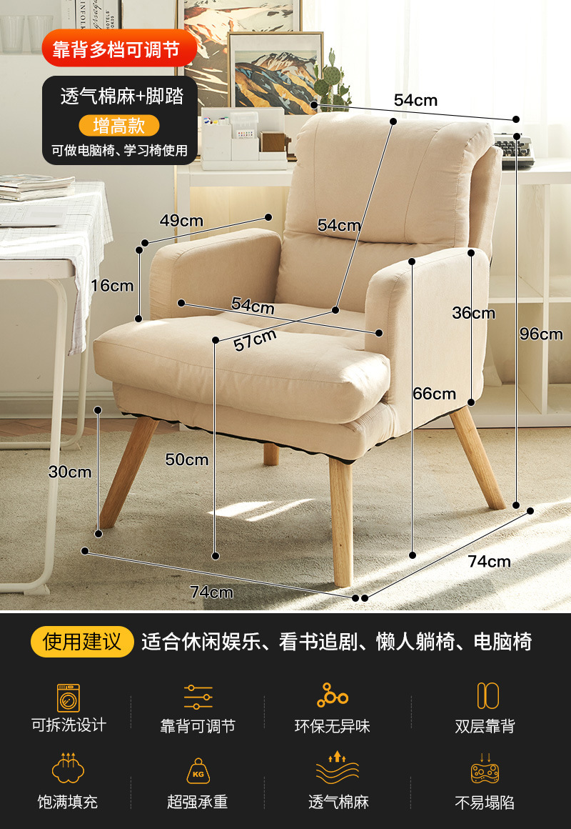 홈 컴퓨터 의자 편안한 긴 앉아 소파 의자 레저 게으른 의자 연구 사무실 의자 침실 기대는 단일 좌석스토어 가기