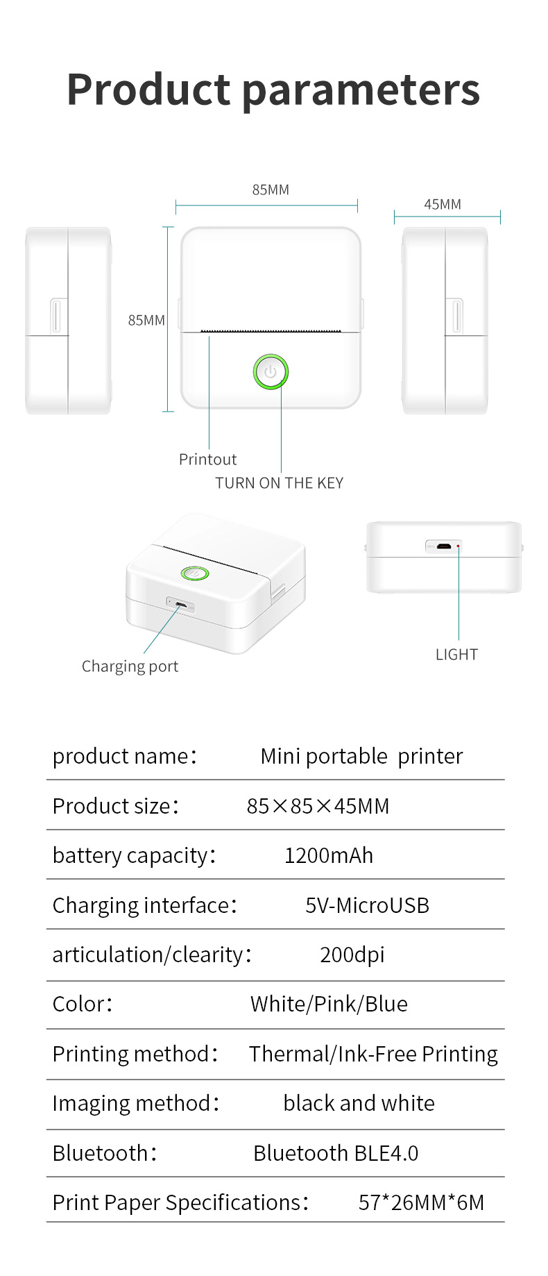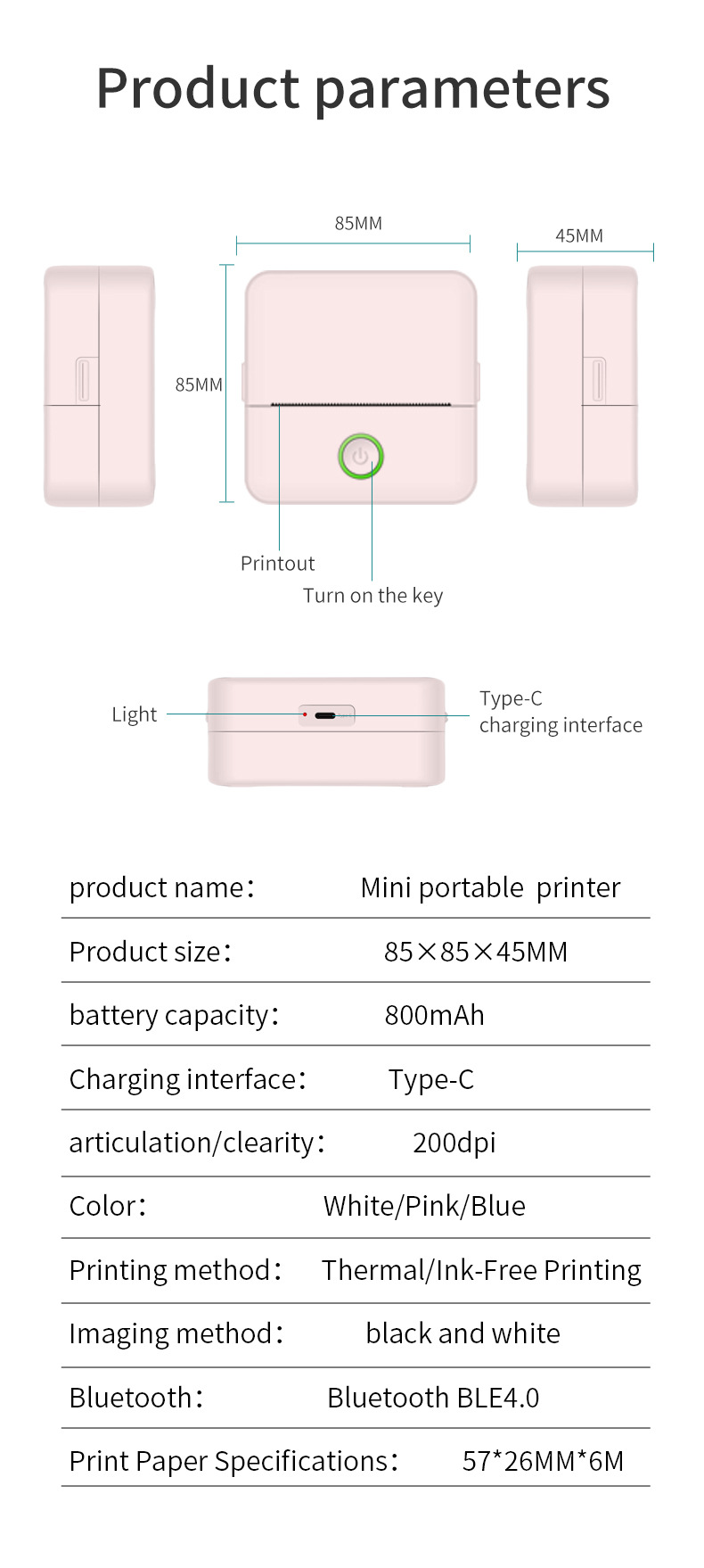 국경 학생 잘못된 질문 프린터 포켓 미니 라벨 휴대용 휴대 전화 사진 블루투스 열 프린터