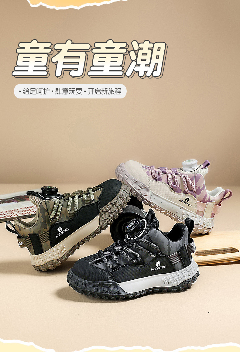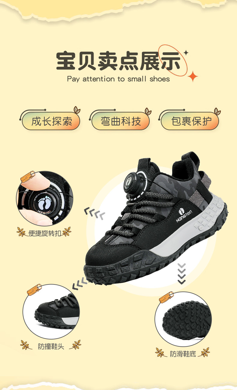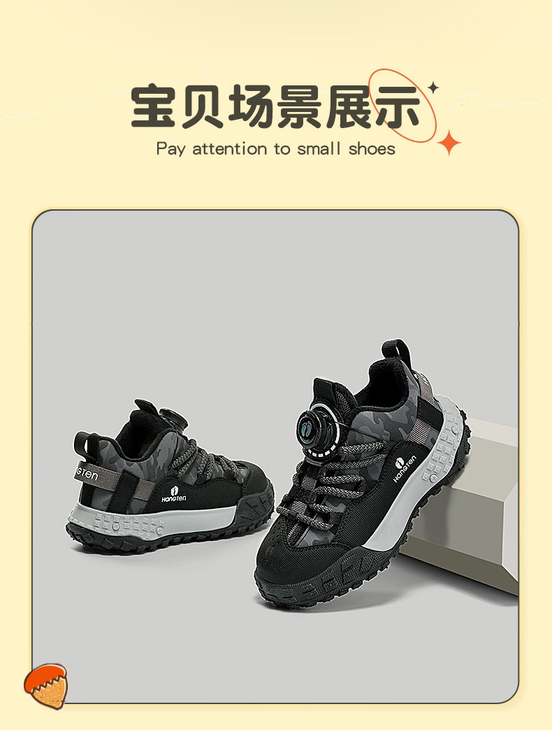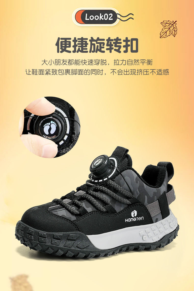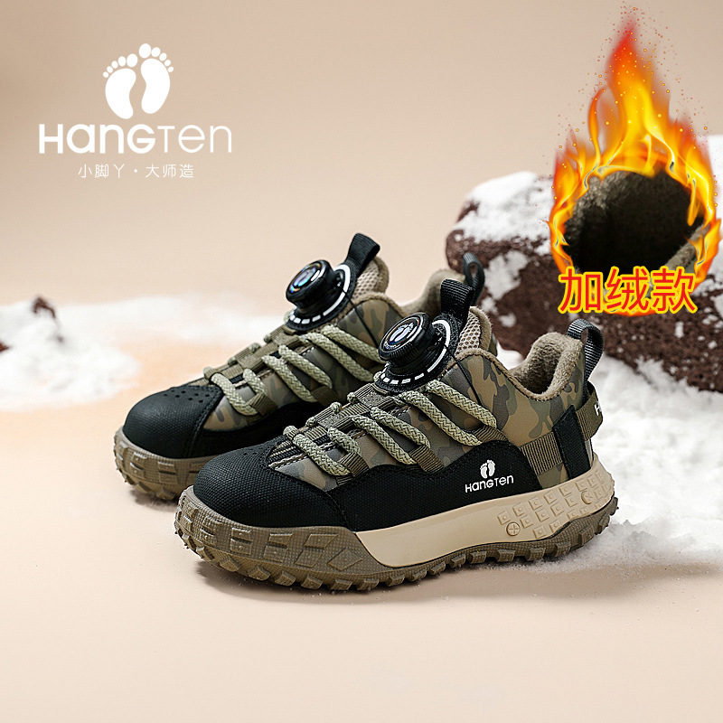 HANGTEN/huanteng 소년 신발 겨울 2023 새 소년의 양면 하이킹 신발 기모 어린이 운동화