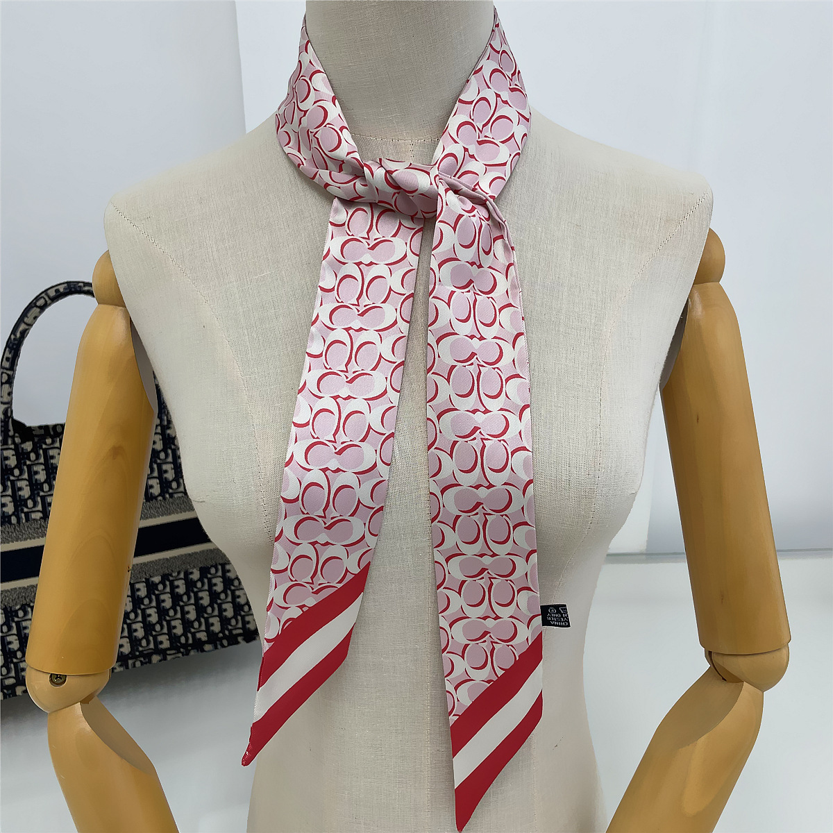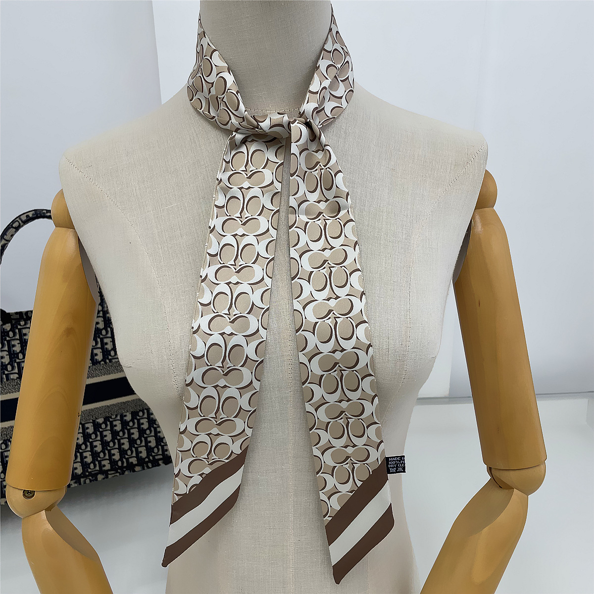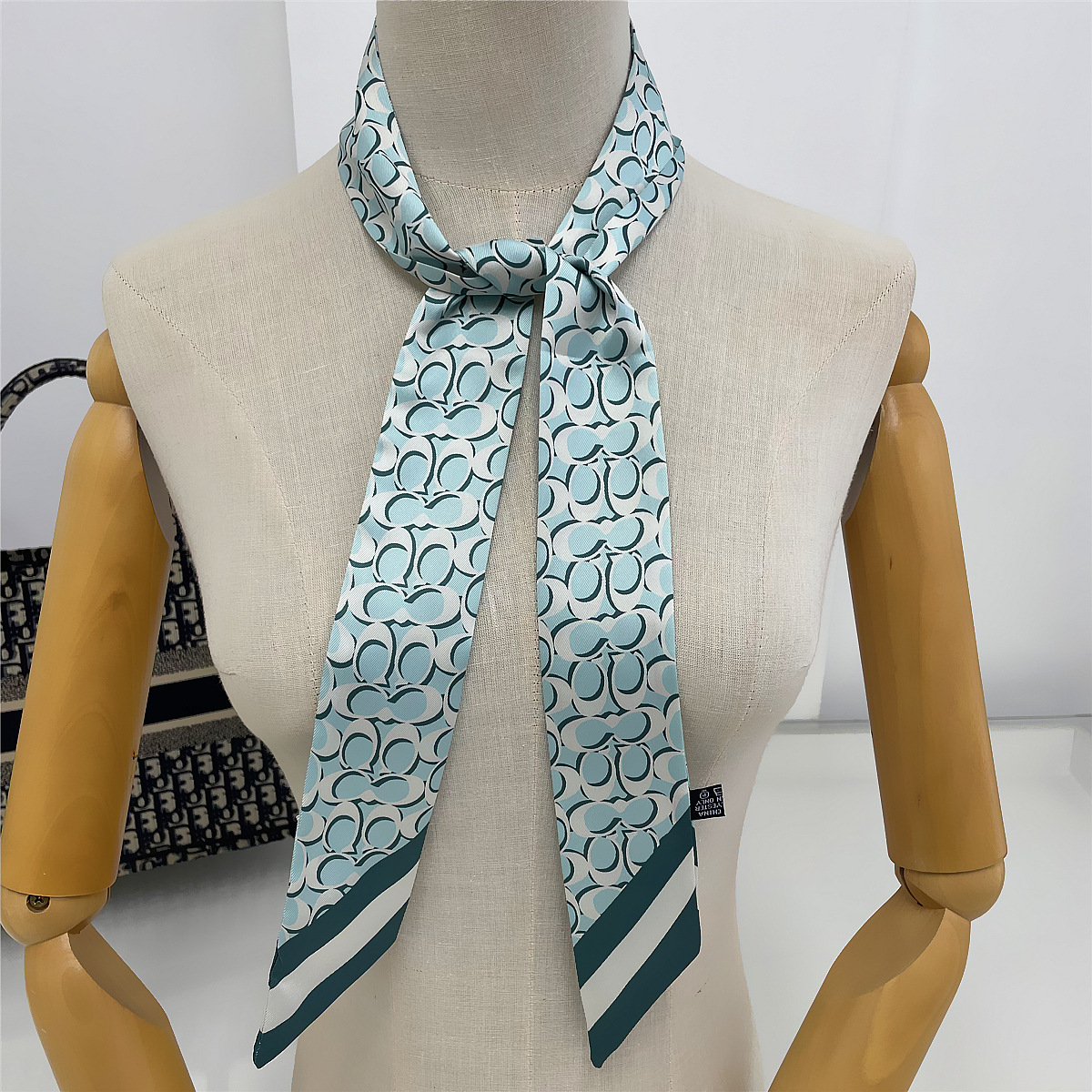 여성용 한국식 120cm 확장 기하학적 체인 장식 넥타이 백 실크 스카프 긴 리본 작은 스카프 헤어 밴드스토어 가기