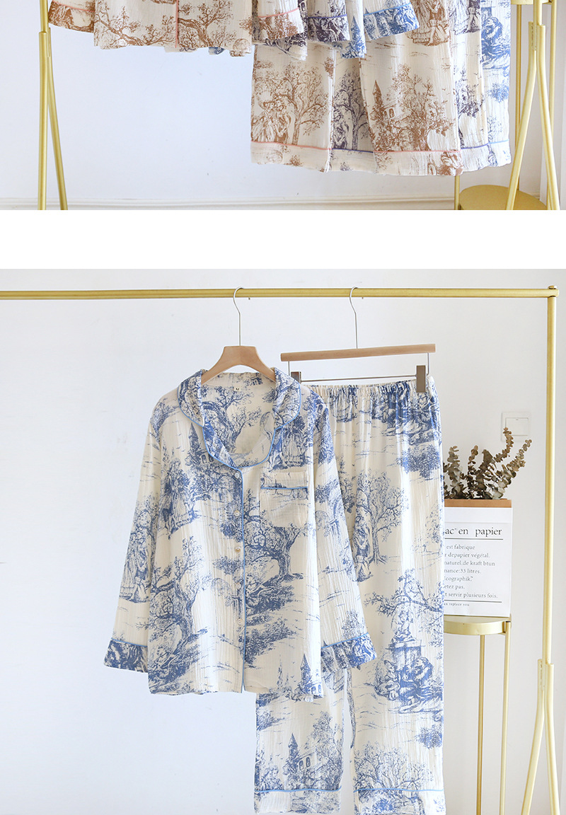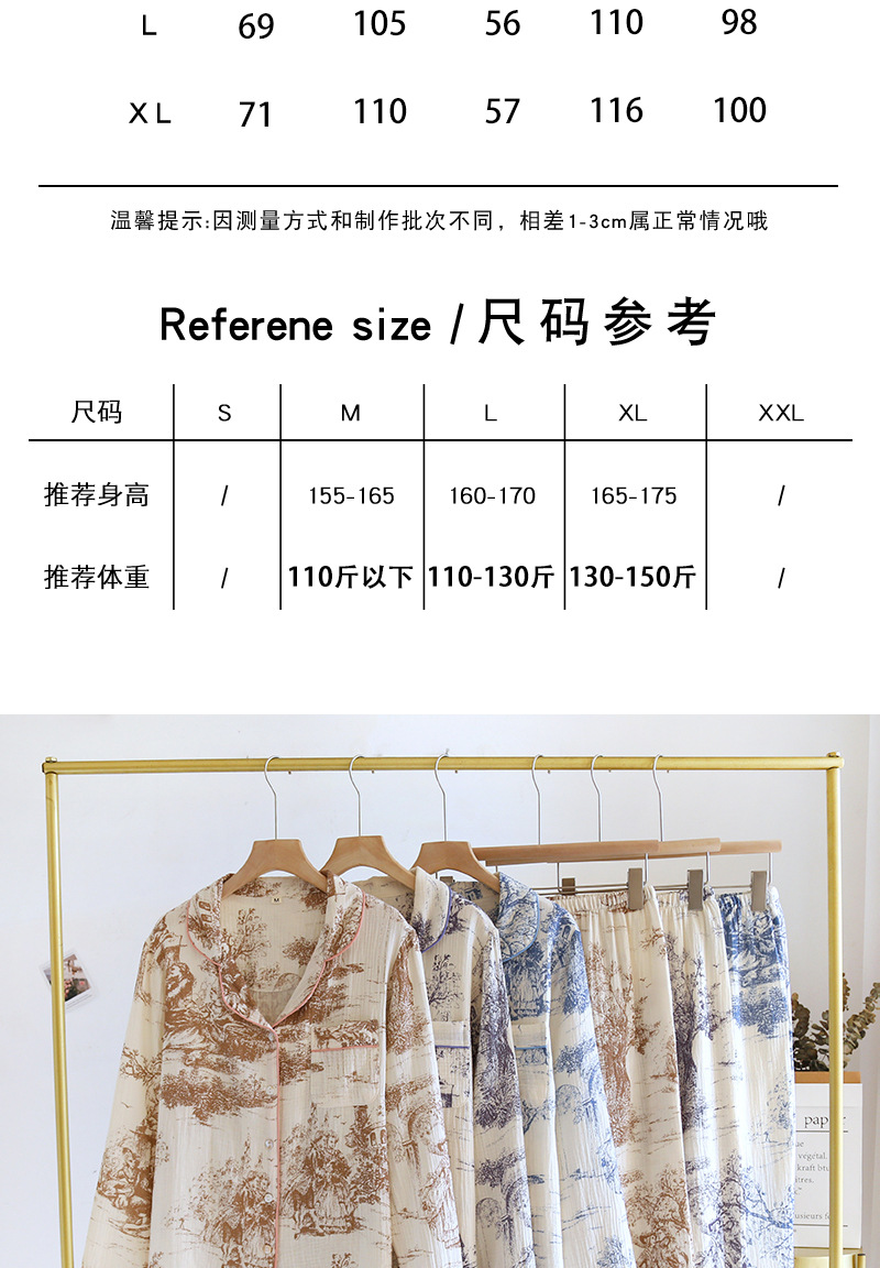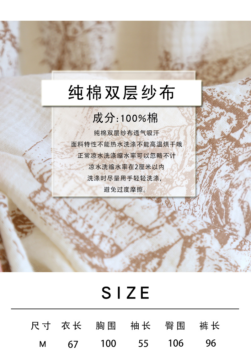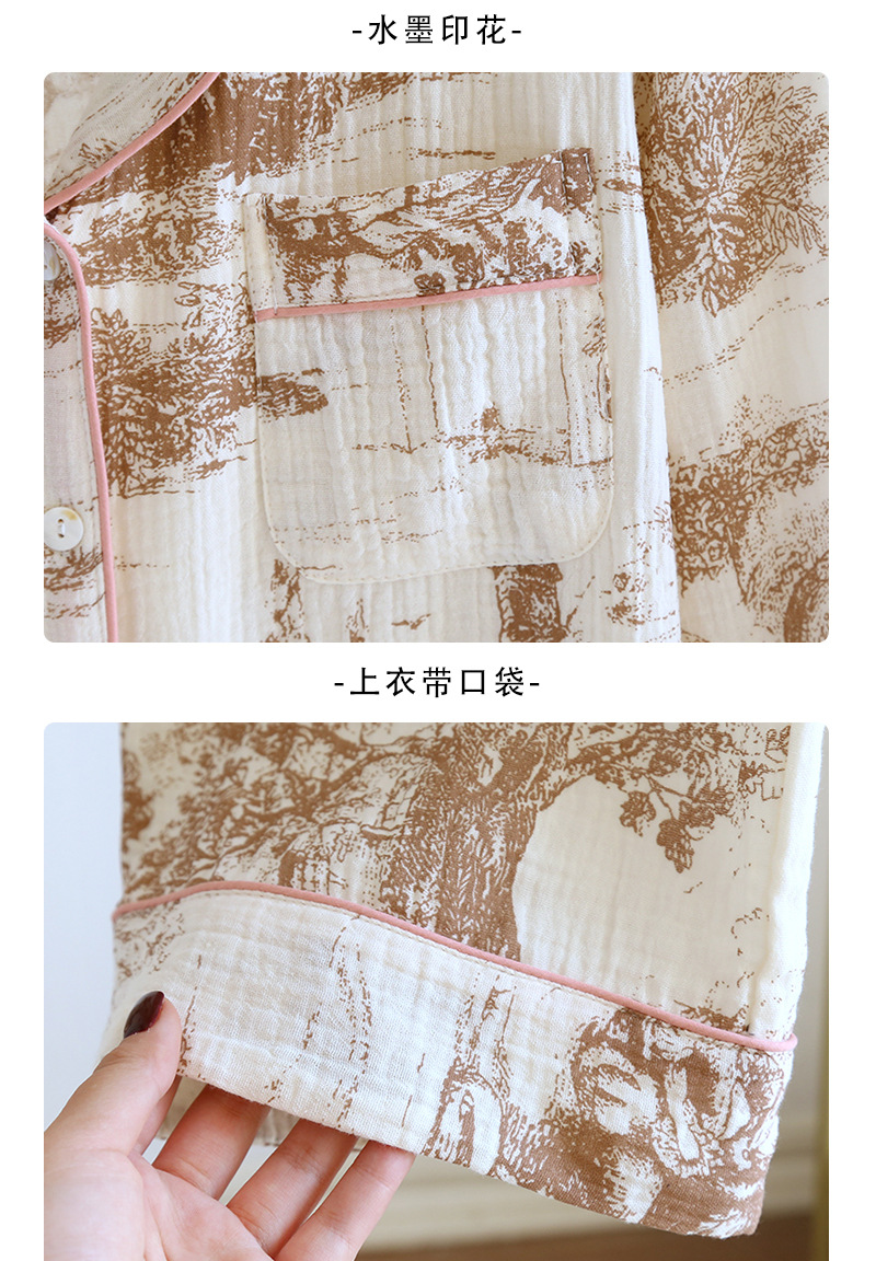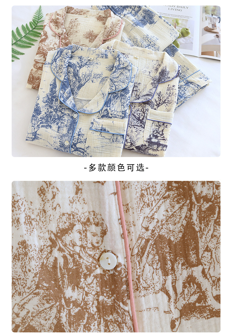 잠옷 순면 거즈 시크릿 가든 여성용 루즈핏 통기성 캐주얼 외출복 홈웨어 통기성 편안함스토어 가기