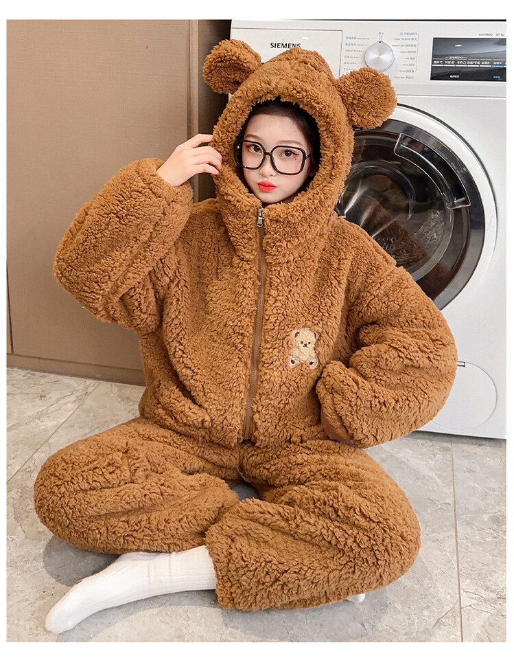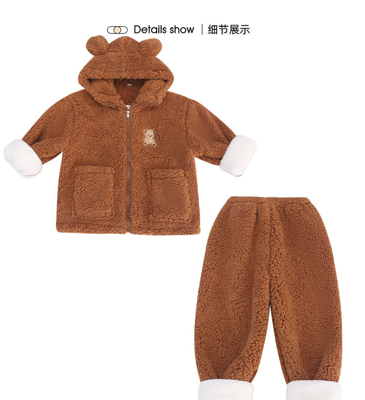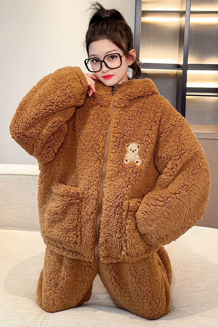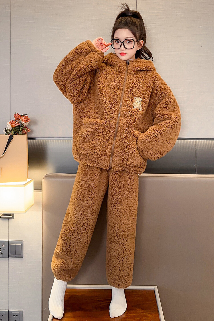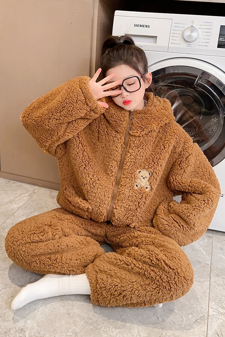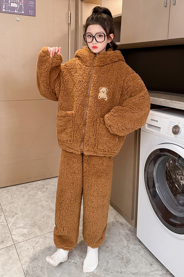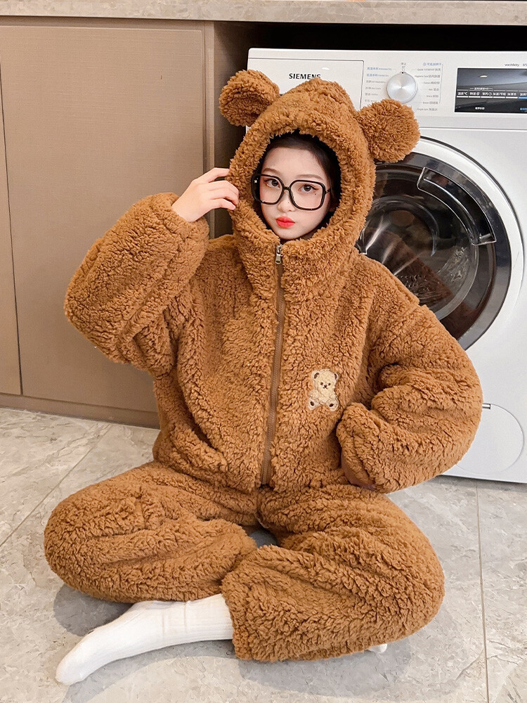 걸스 벨벳 라인드 두꺼운 후드 홈 옷 가을과 겨울 어린이 따뜻한 세트 2023 새로운 큰 어린이 잠옷스토어 가기