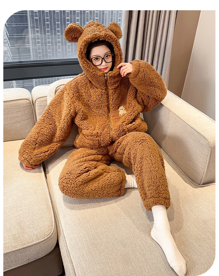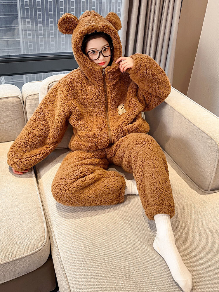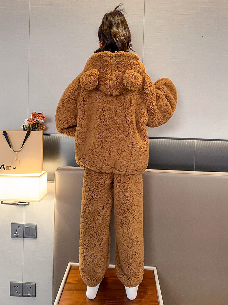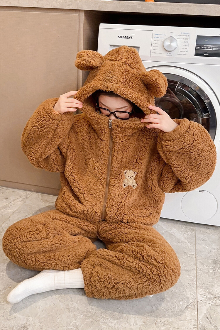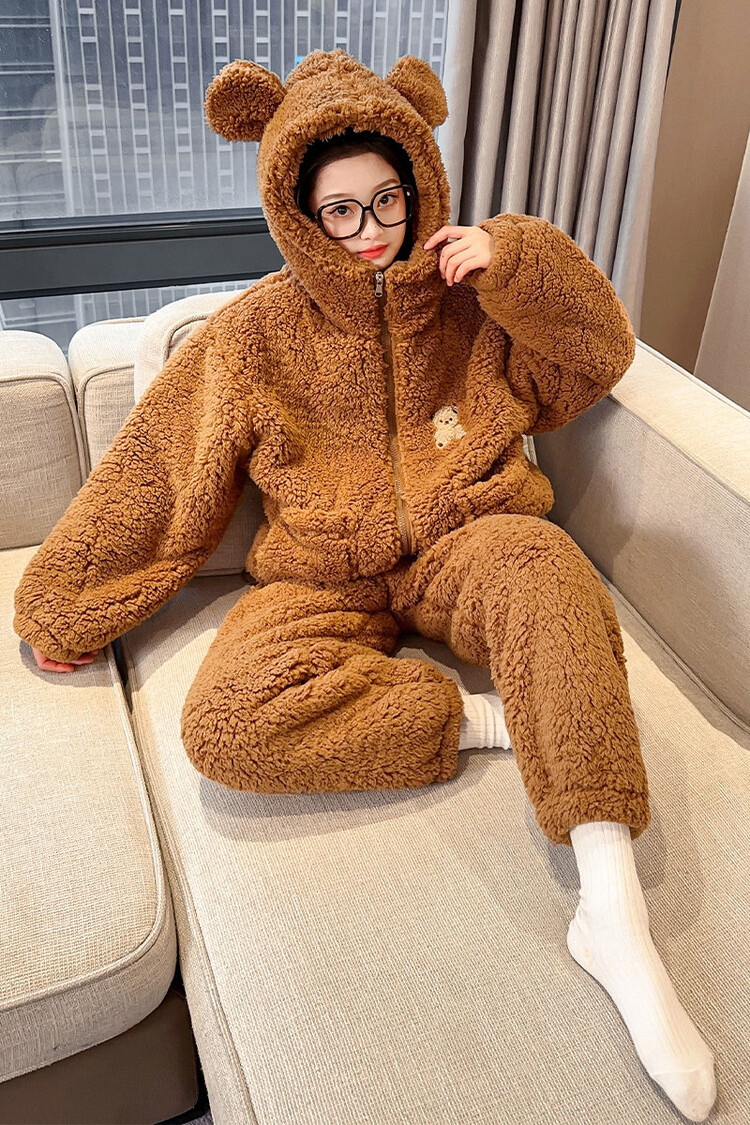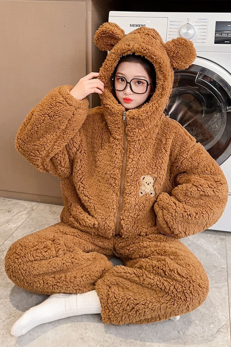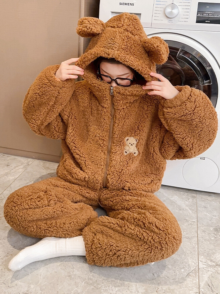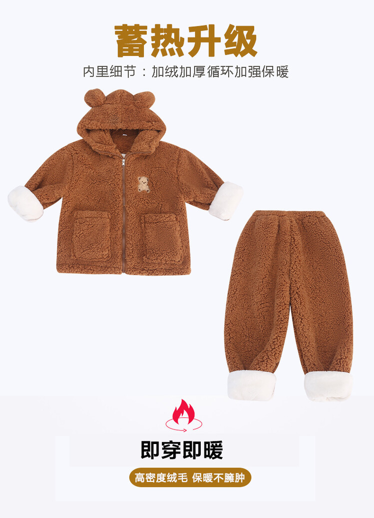 걸스 벨벳 라인드 두꺼운 후드 홈 옷 가을과 겨울 어린이 따뜻한 세트 2023 새로운 큰 어린이 잠옷스토어 가기