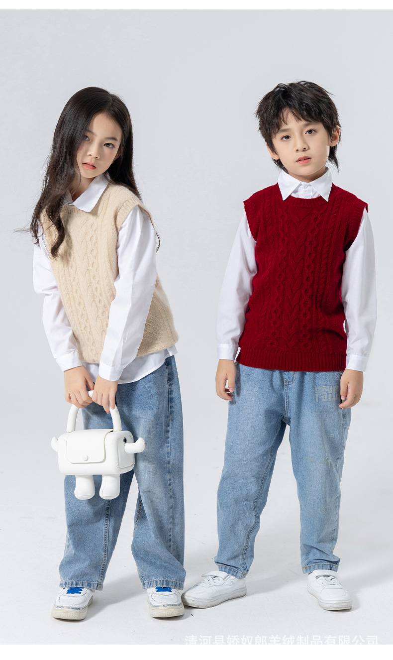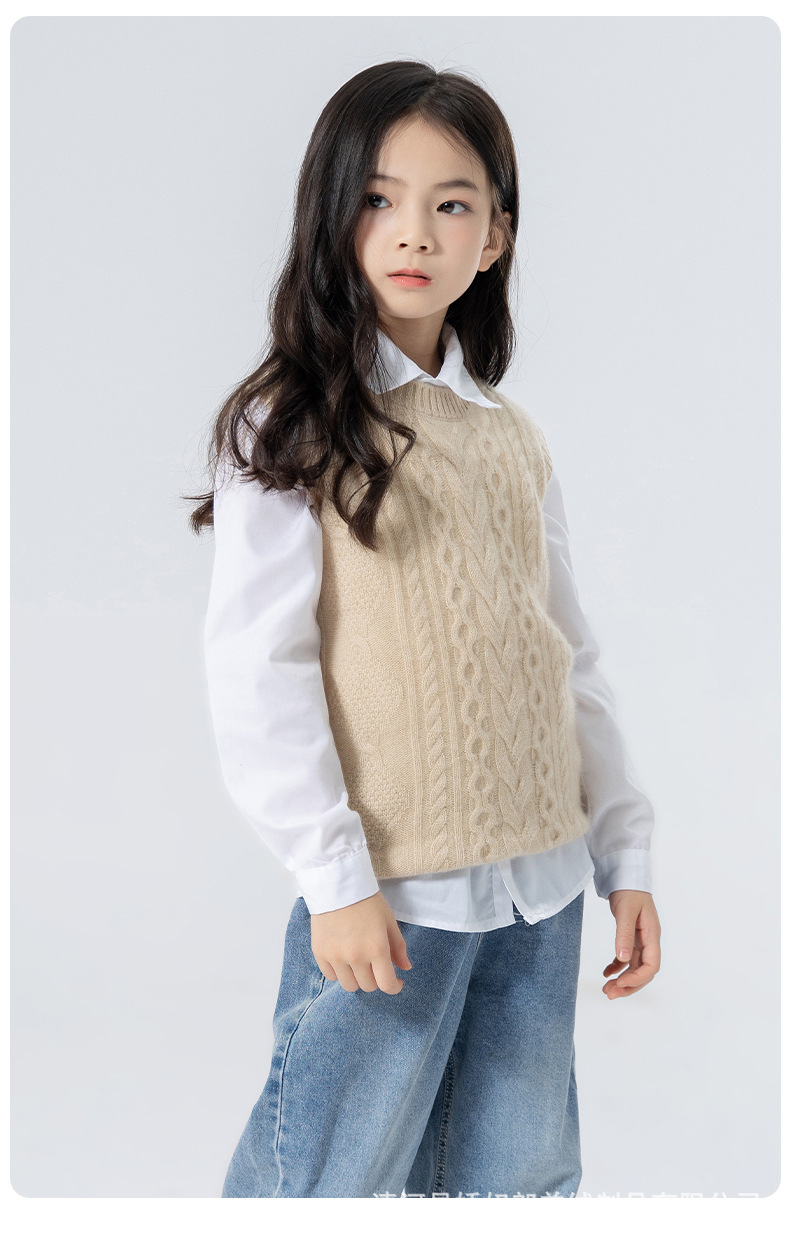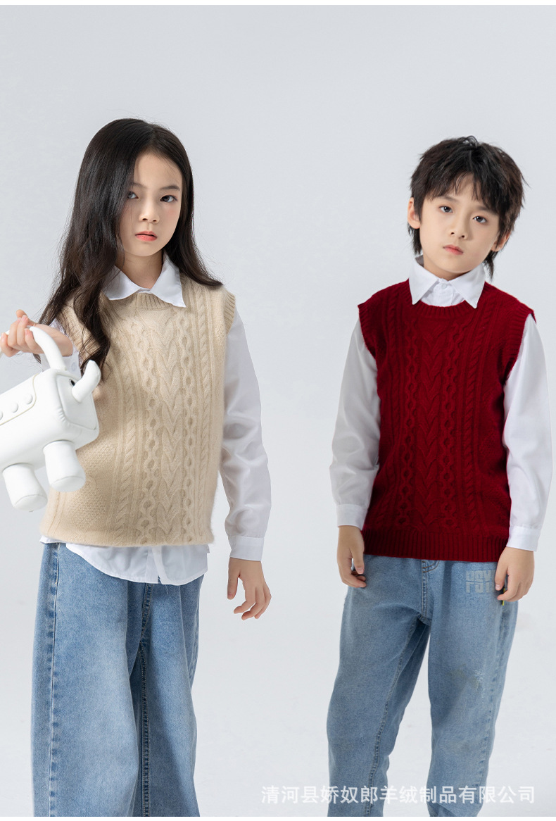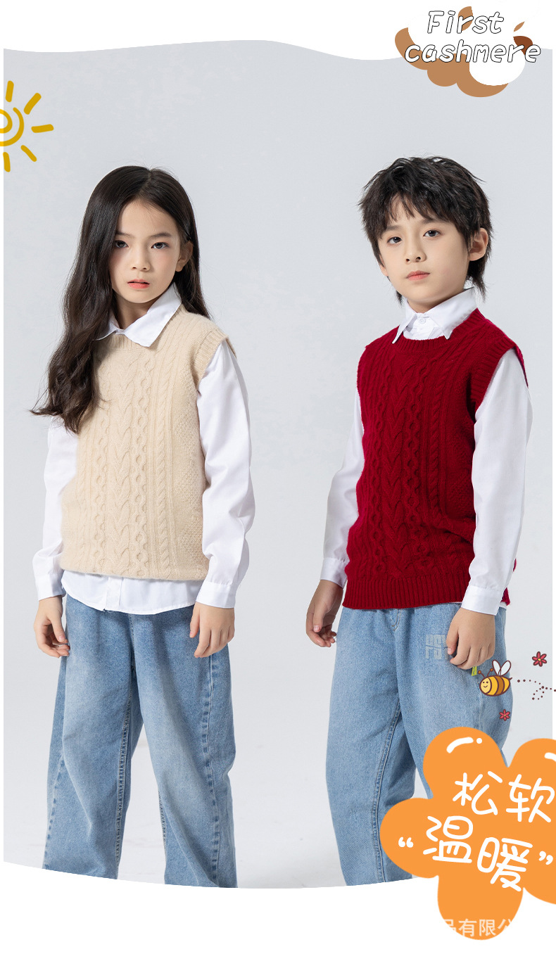 어린이 캐시미어 니트 라운드 넥 트위스트 소년과 소녀 민소매 양복 조끼, 중대형 어린이를위한 두꺼운 조끼스토어 가기
