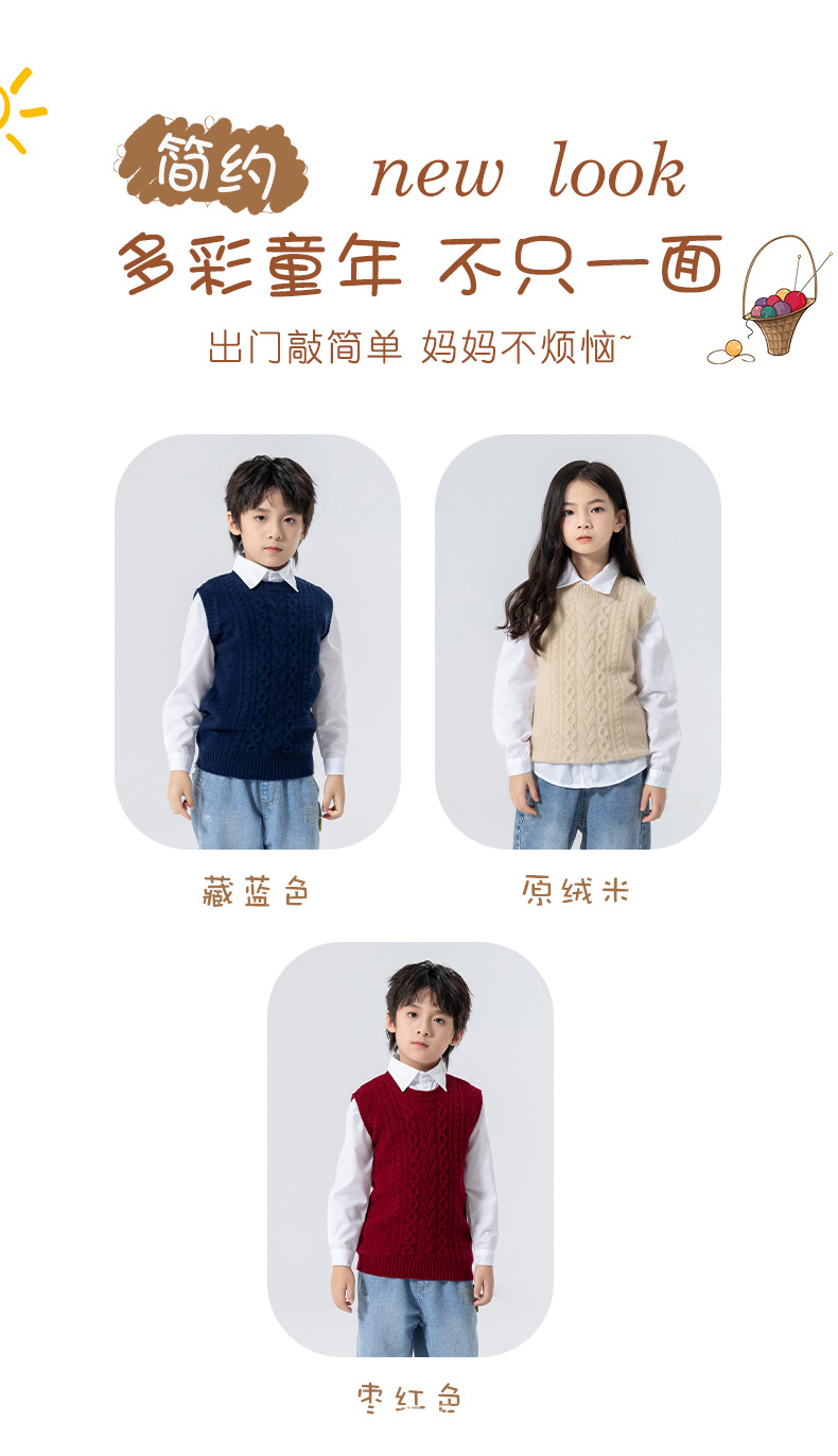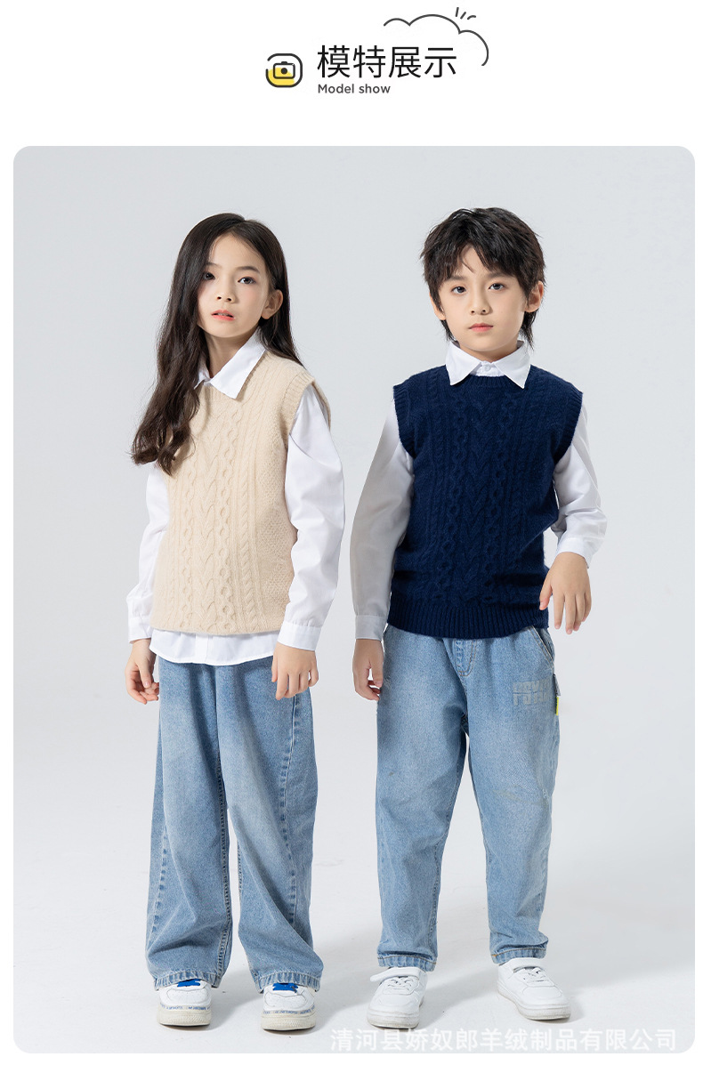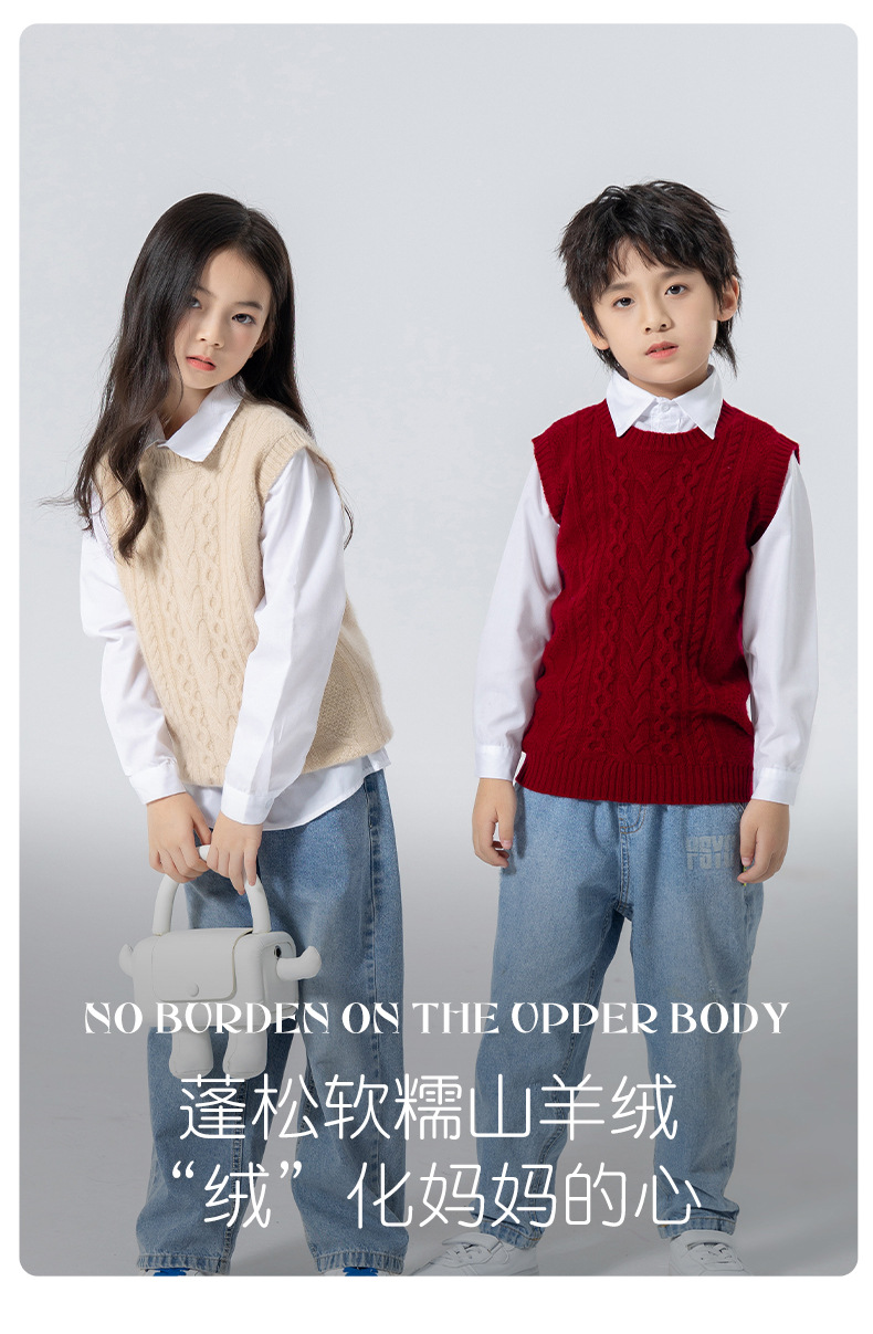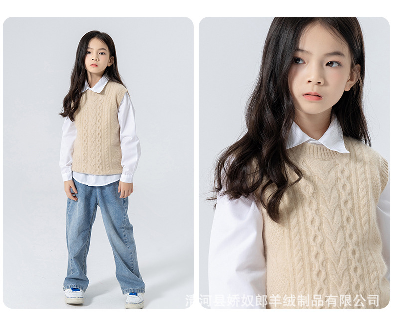 어린이 캐시미어 니트 라운드 넥 트위스트 소년과 소녀 민소매 양복 조끼, 중대형 어린이를위한 두꺼운 조끼스토어 가기
