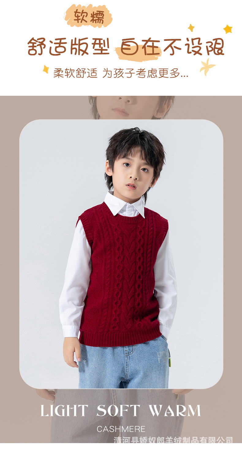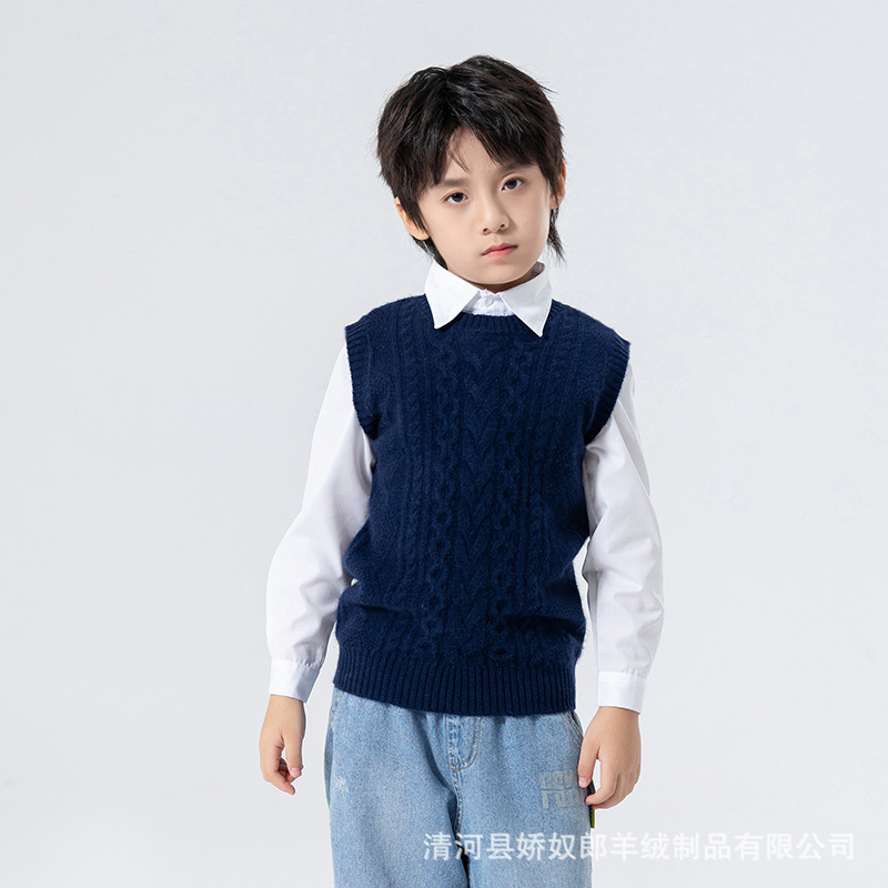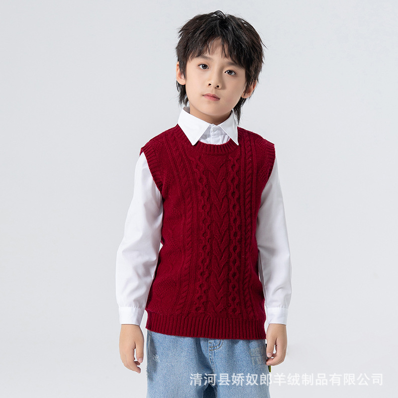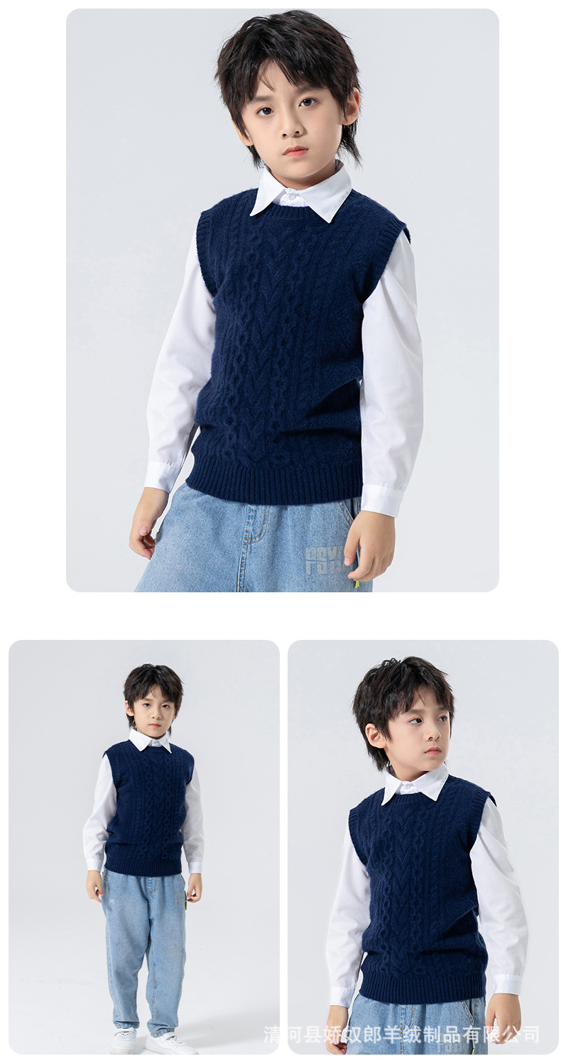 어린이 캐시미어 니트 라운드 넥 트위스트 소년과 소녀 민소매 양복 조끼, 중대형 어린이를위한 두꺼운 조끼