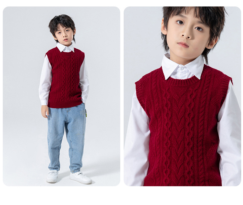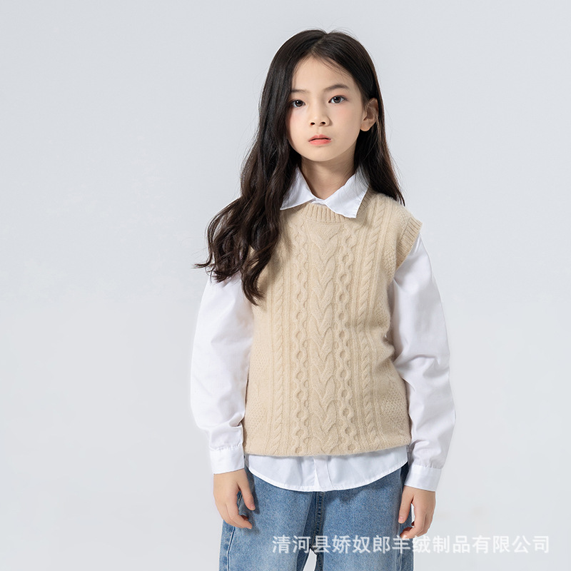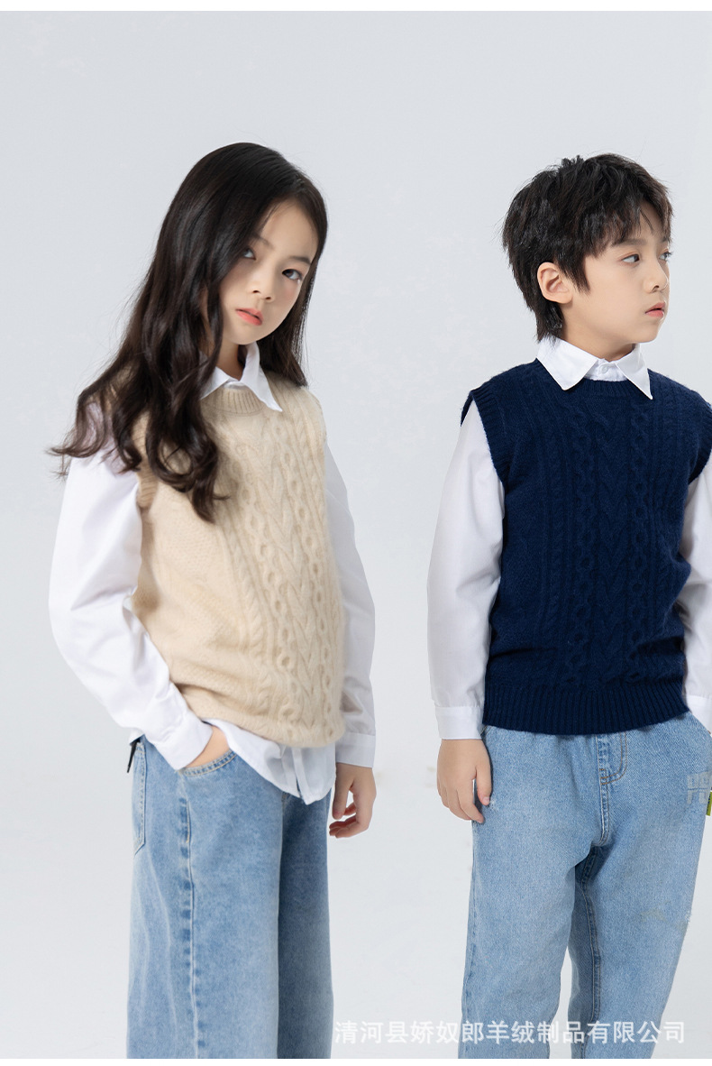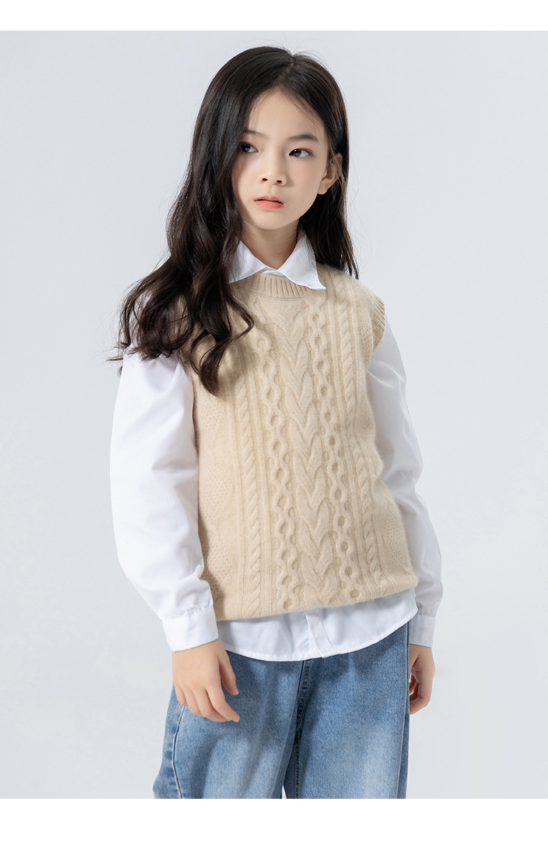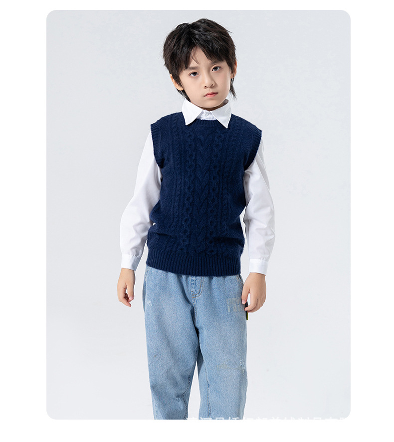 어린이 캐시미어 니트 라운드 넥 트위스트 소년과 소녀 민소매 양복 조끼, 중대형 어린이를위한 두꺼운 조끼