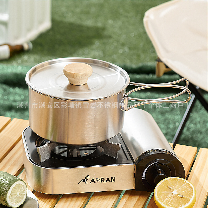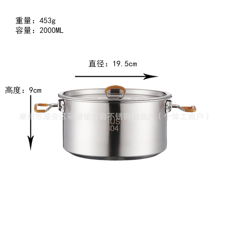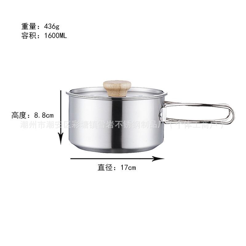 • 304 2L 접는 손잡이 단일 바닥 나무 냄비 버튼 캠핑 냄비