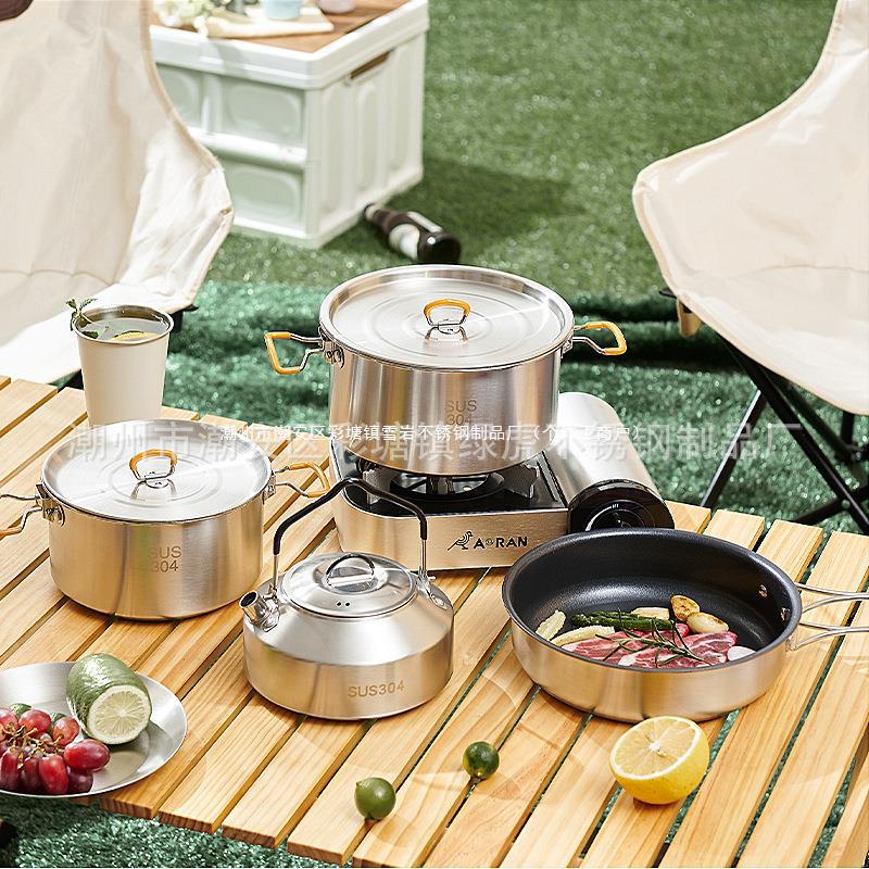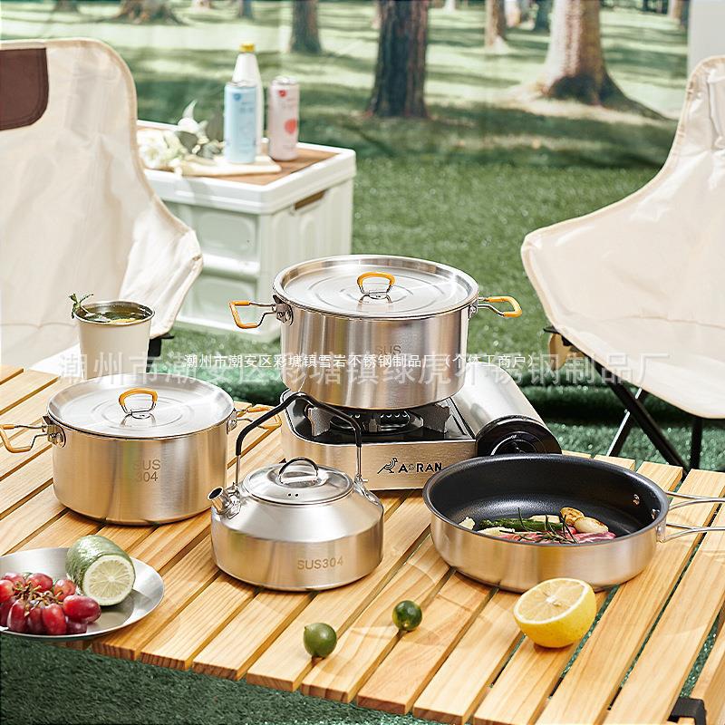 수납 세트 냄비 캠핑 야외 나들이용 냄비 프라이팬 야외 요리용 프라이팬 주전자 휴대용 304 스테인리스
