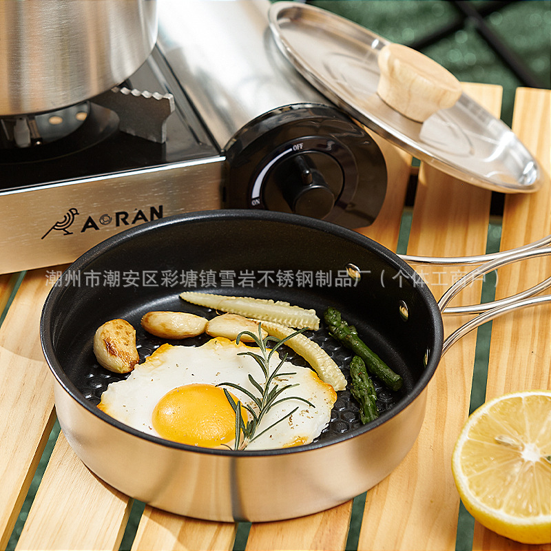 • 304 21CM 접는 손잡이 이중 바닥 붙지 않는 프라이팬