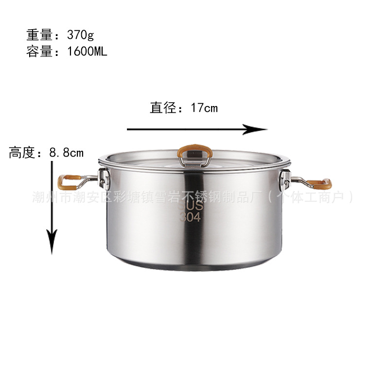 • 304 1.6L 접이식 손잡이 단일 바닥 캠핑 냄비
