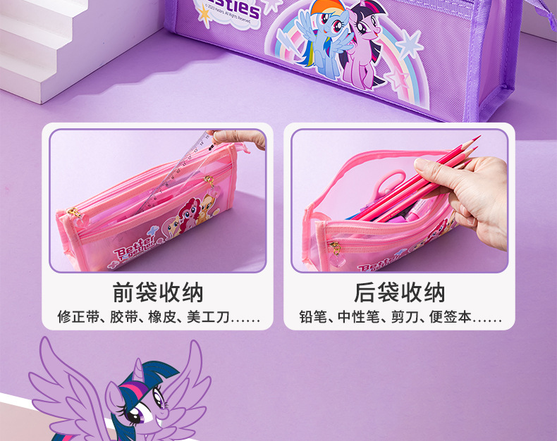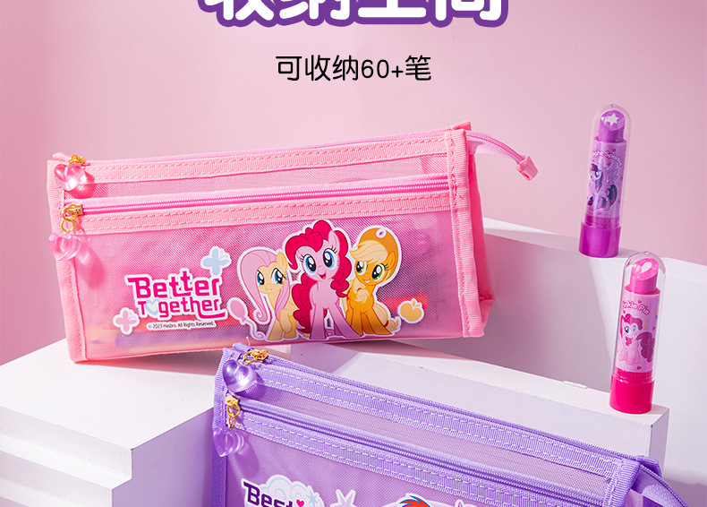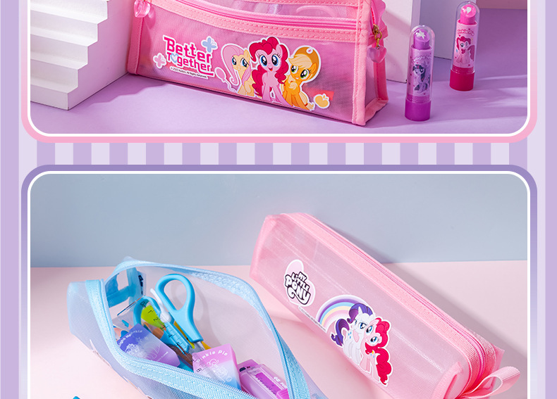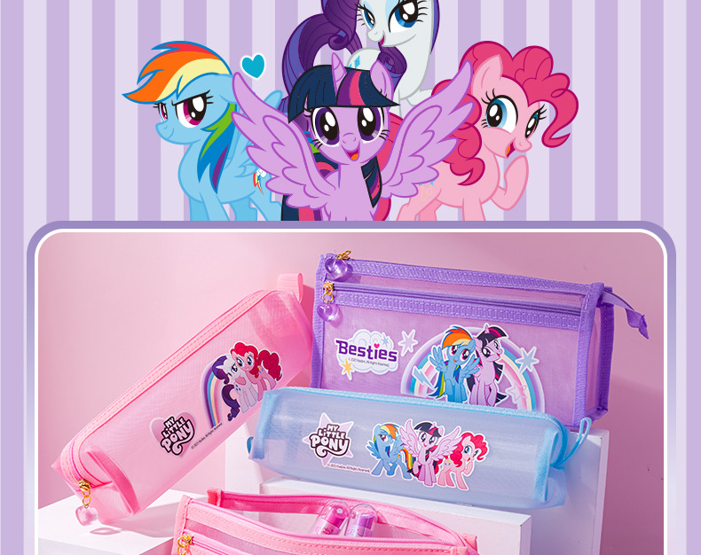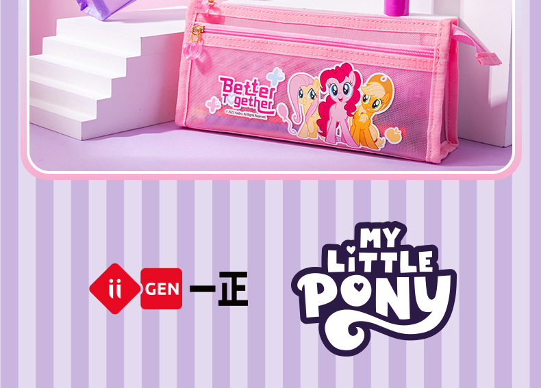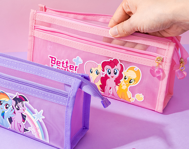 Iigen Yizheng 문구 조랑말 Baoli 이미지 메쉬 연필 케이스 소녀 초등학교 학생 투명 대용량 연필 케이스스토어 가기