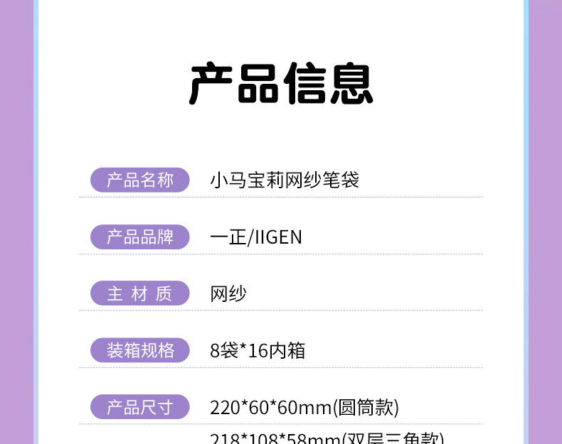 Iigen Yizheng 문구 조랑말 Baoli 이미지 메쉬 연필 케이스 소녀 초등학교 학생 투명 대용량 연필 케이스