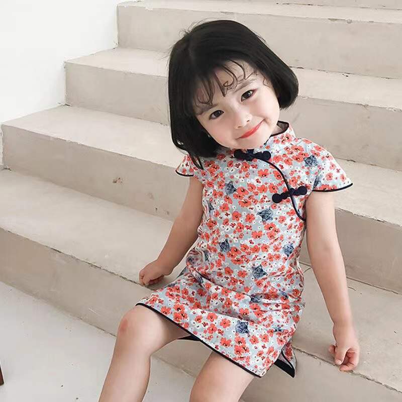 소녀 cheongsam 어린이 cheongsam 여름 어린 소녀 cheongsam 원피스 중국 스타일 복고풍 원피스 아기 소녀 공주 원피스