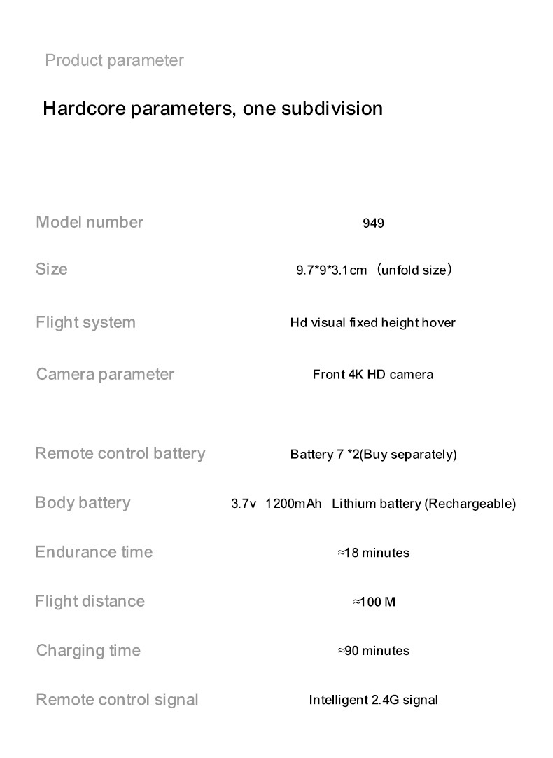 毛/净重G.W./N.W.:12.6/14KGS(无航拍)、13.2/14.5KGS(有航拍)