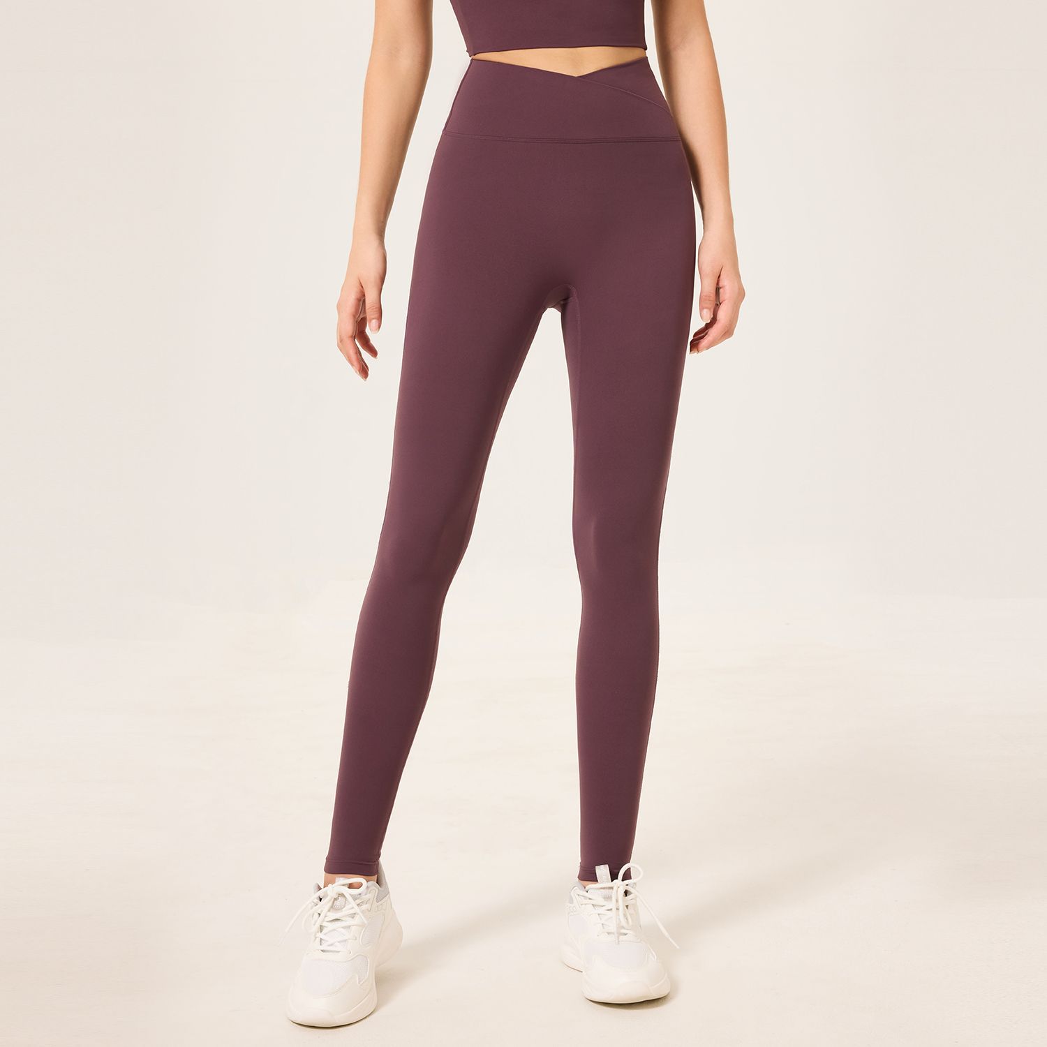 복부를 조이는 힙업 요가 팬츠, 크로스 V 허리 디자인으로 슬림한 효과, 속옷 불필요, 누드감, 타이트한 핏, 사이클링, 스포츠, 피트니스용 롱 팬츠 신상품