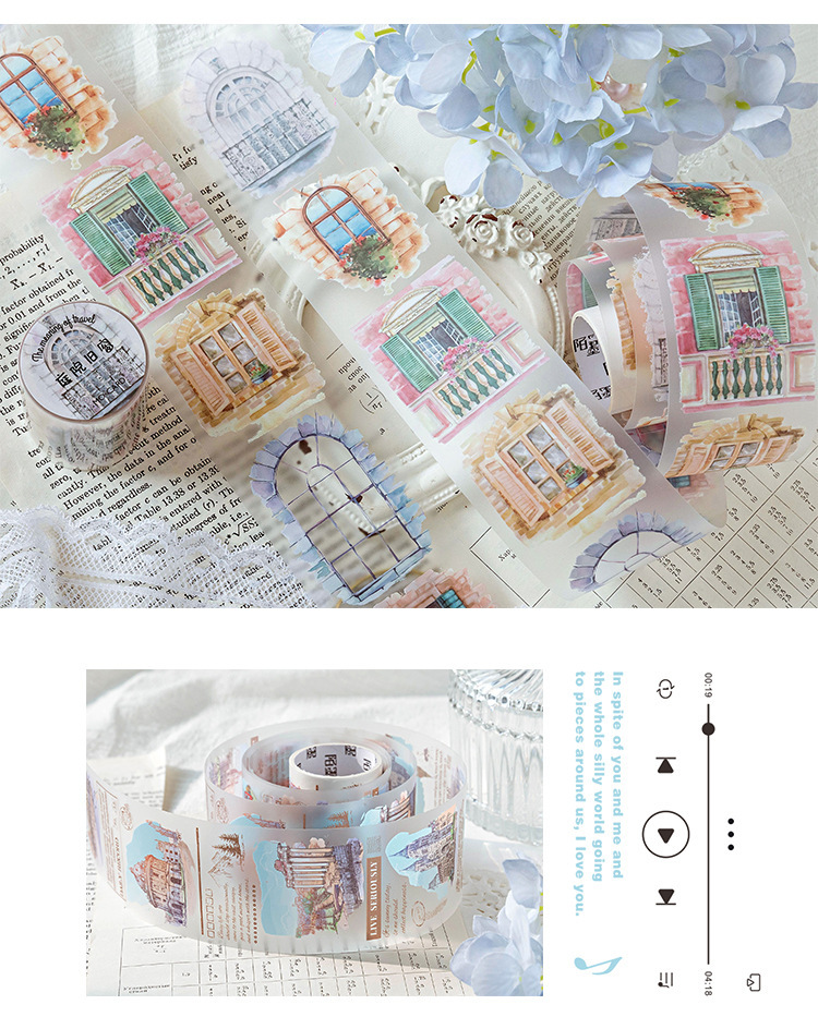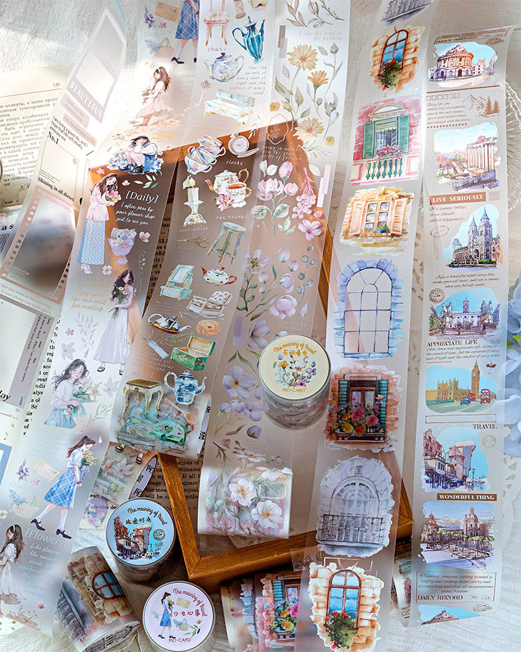 모모 PET 테이프 여행 의미 시리즈 빛 복고풍 소녀 저널 DIY 콜라주 장식 재료 스티커