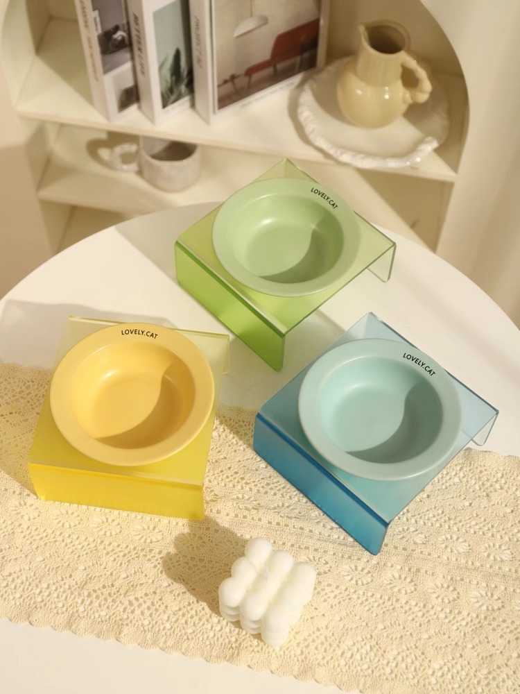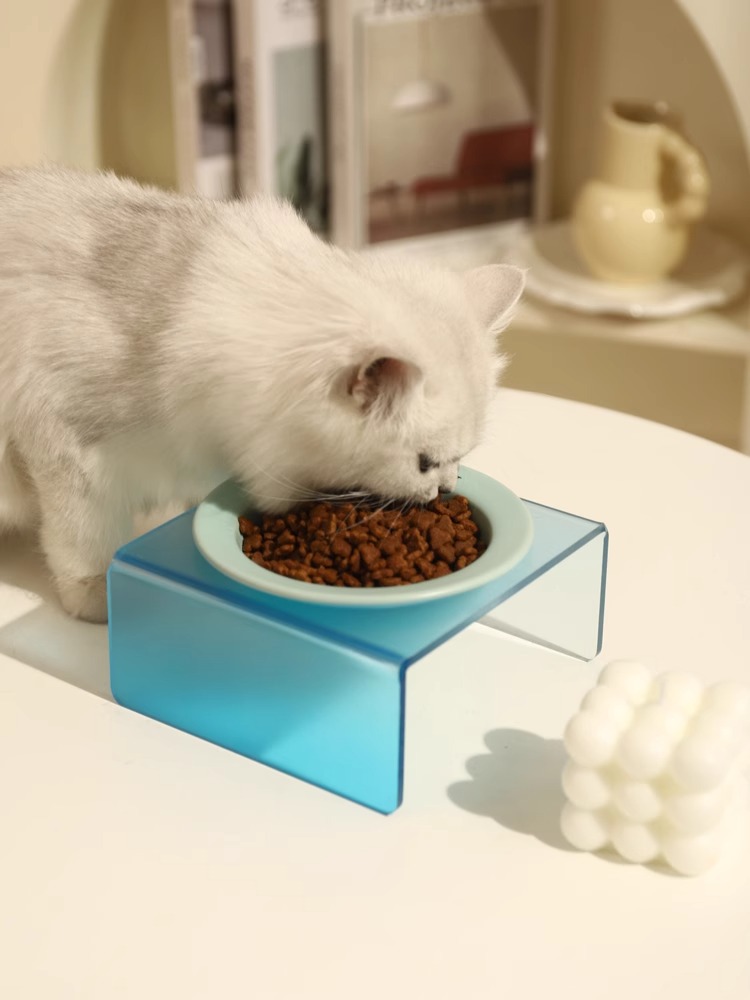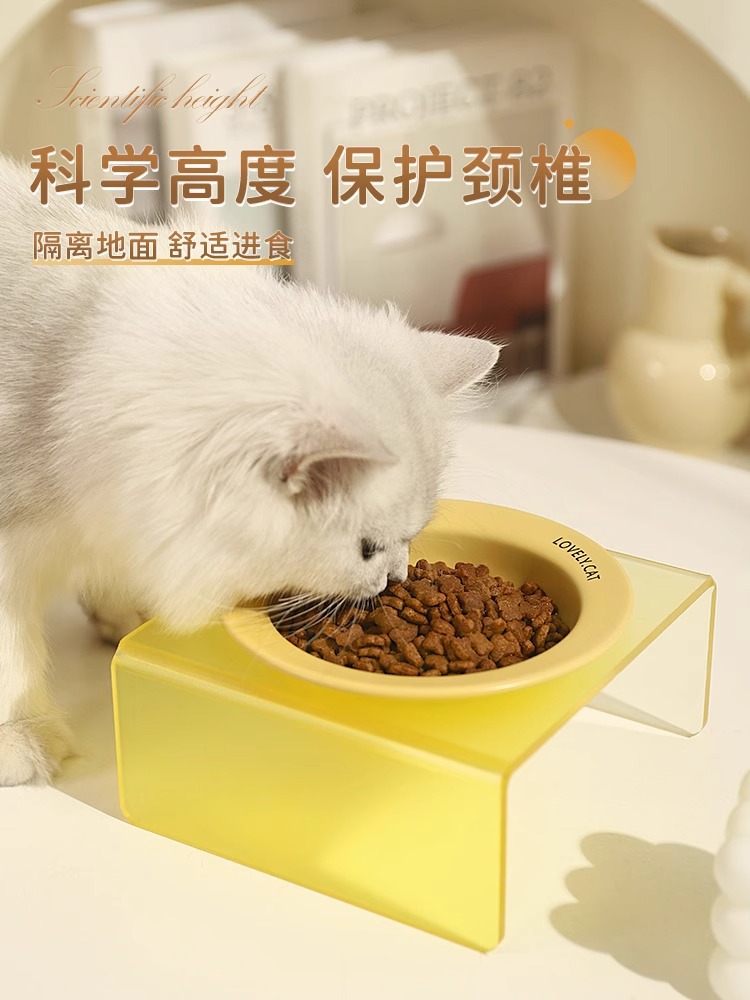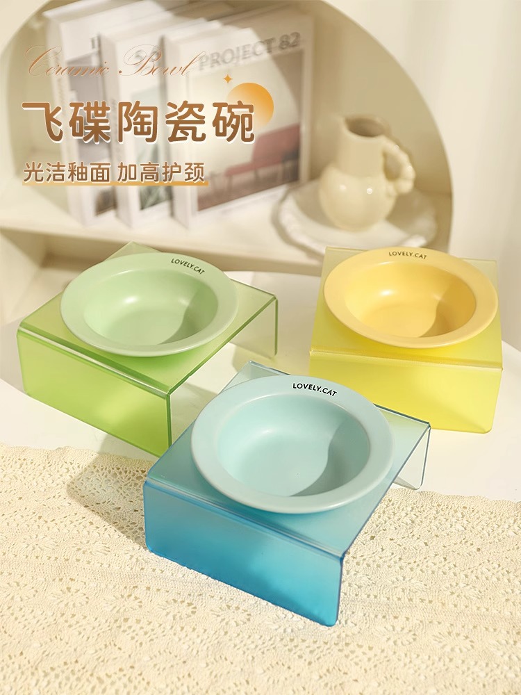 한국 bd 애완 동물 UFO 그릇 고양이 접시 개 고양이 음식 밥 밥 잔 아크릴 그릇 랙 고양이 그릇 세라믹 고양이 먹이 그릇