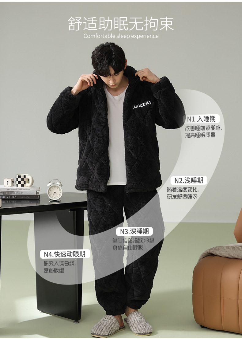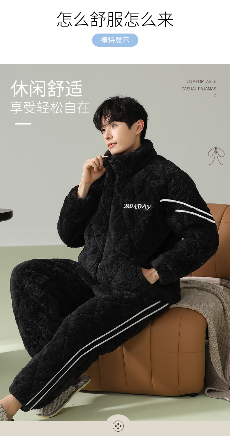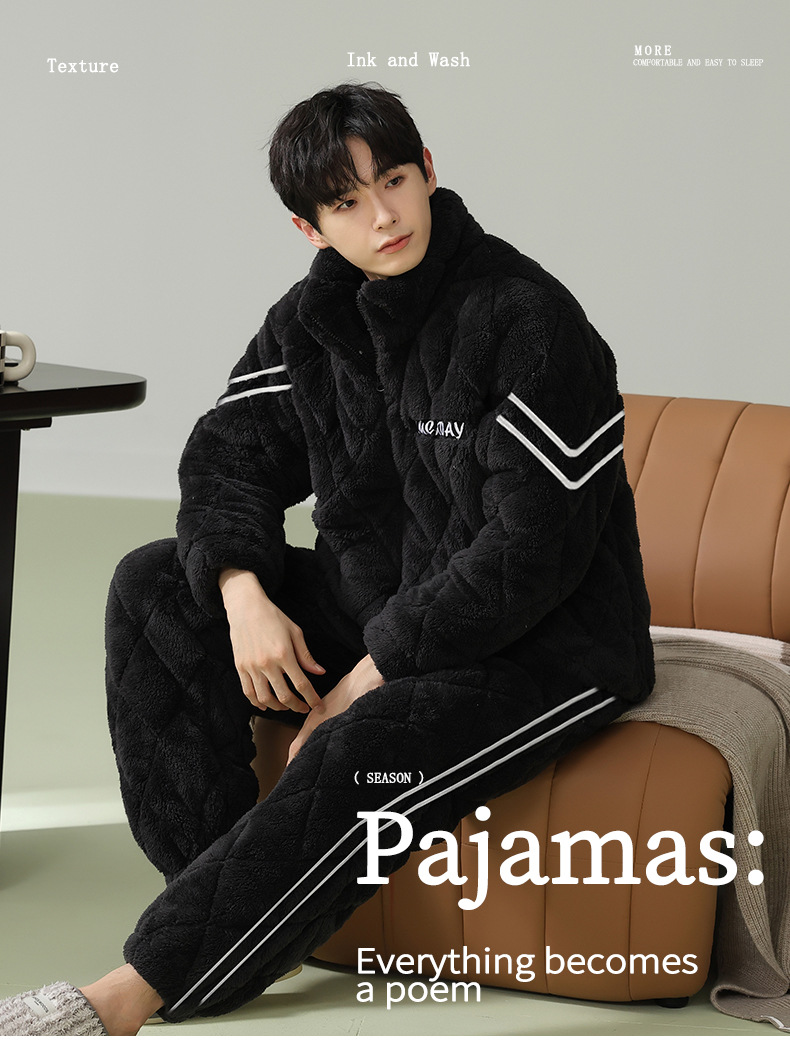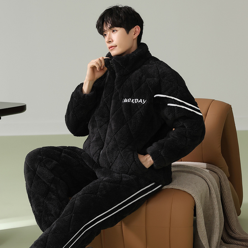 Cainiqing 3 층 두꺼운면 패딩 재킷 두꺼운 파자마 남성 겨울 지퍼 슈퍼 두꺼운 겉옷 홈웨어 세트