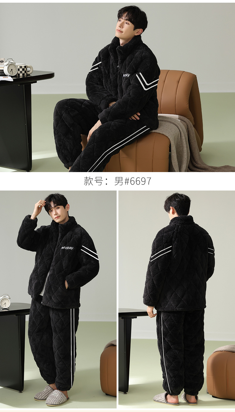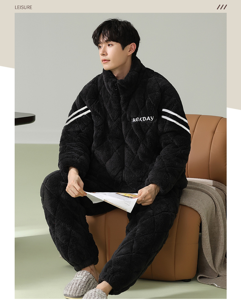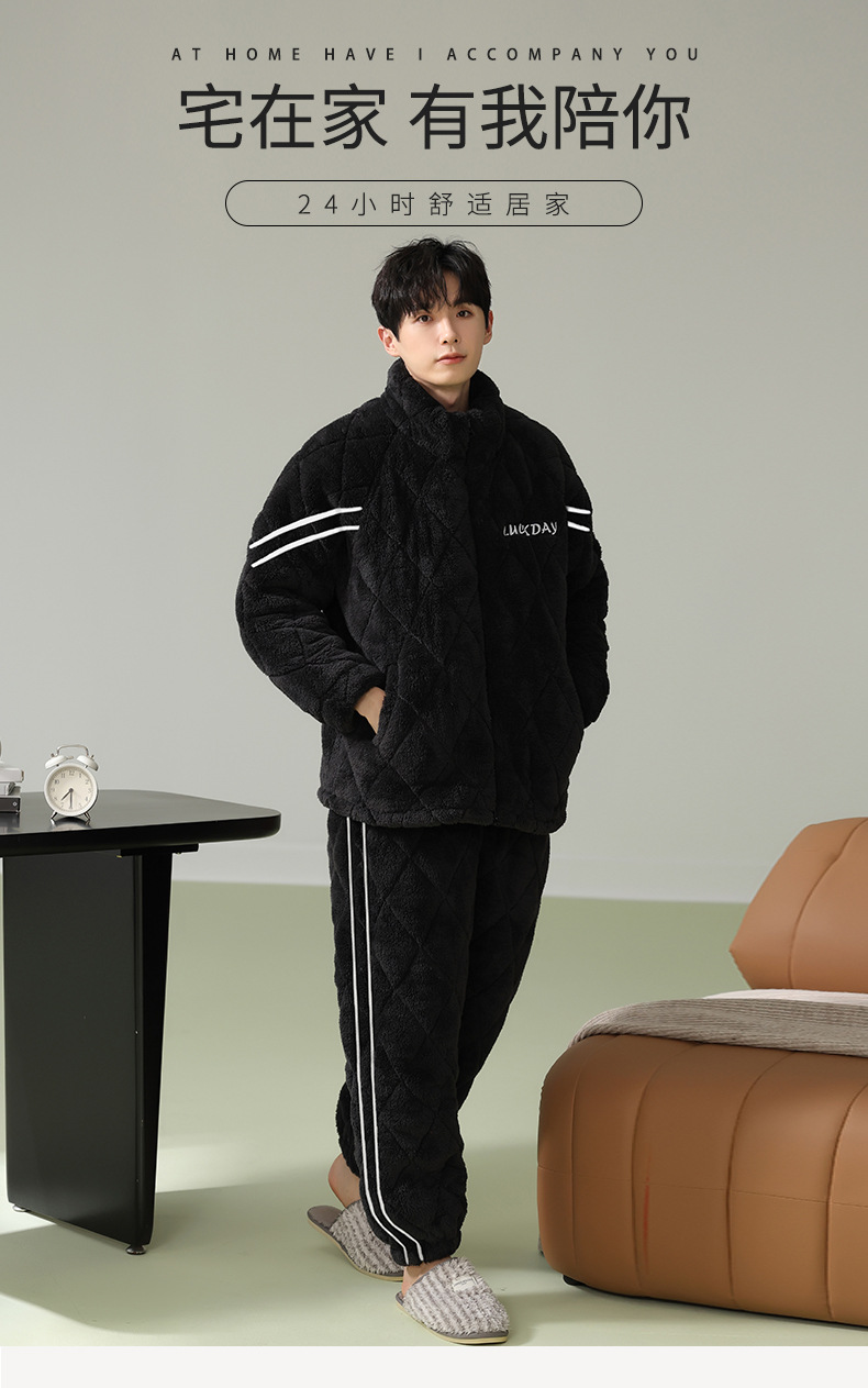Cainiqing 3 층 두꺼운면 패딩 재킷 두꺼운 파자마 남성 겨울 지퍼 슈퍼 두꺼운 겉옷 홈웨어 세트
