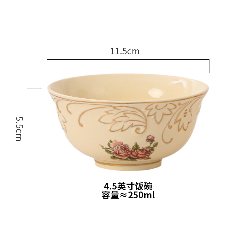 • 4.5inch 금테 장미 미색 - 밥그릇 x 2