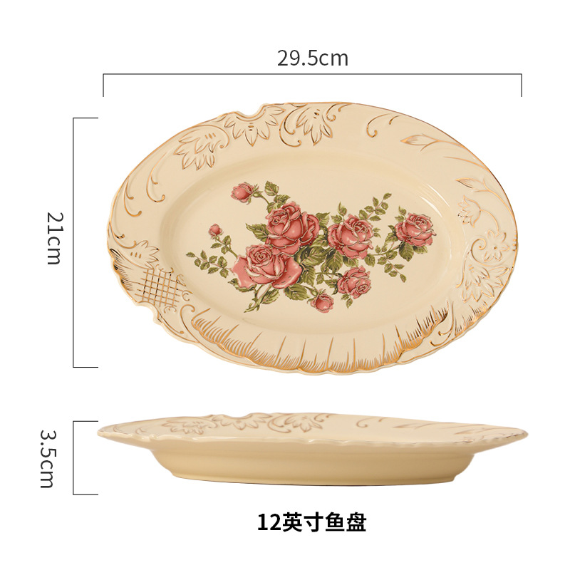 • 12 인치 프놈펜 장미 베이지 생선 접시