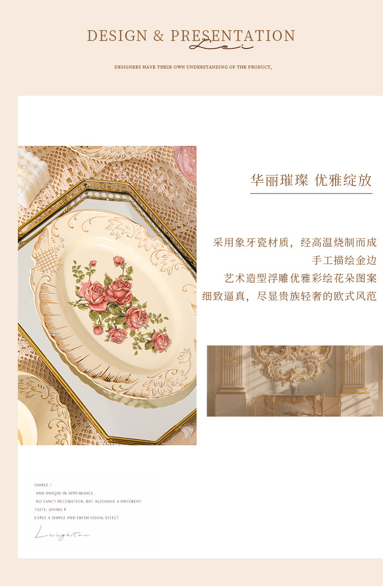 유럽식 세라믹 식기 고급 금판 접시 가정 먹는 그릇 수프 그릇 접시 과일 접시 간판