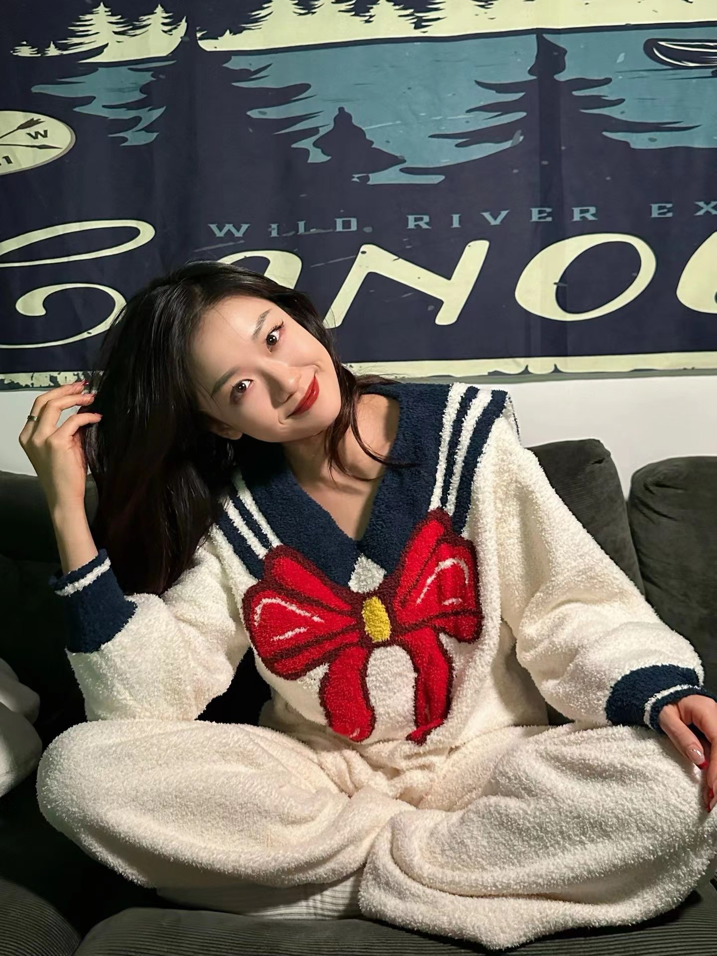 가을과 겨울 새로운 예쁜 소녀 전사 반 벨벳 부모 자식 잠옷 세트 부드러운 따뜻한 겉옷 홈 웨어스토어 가기