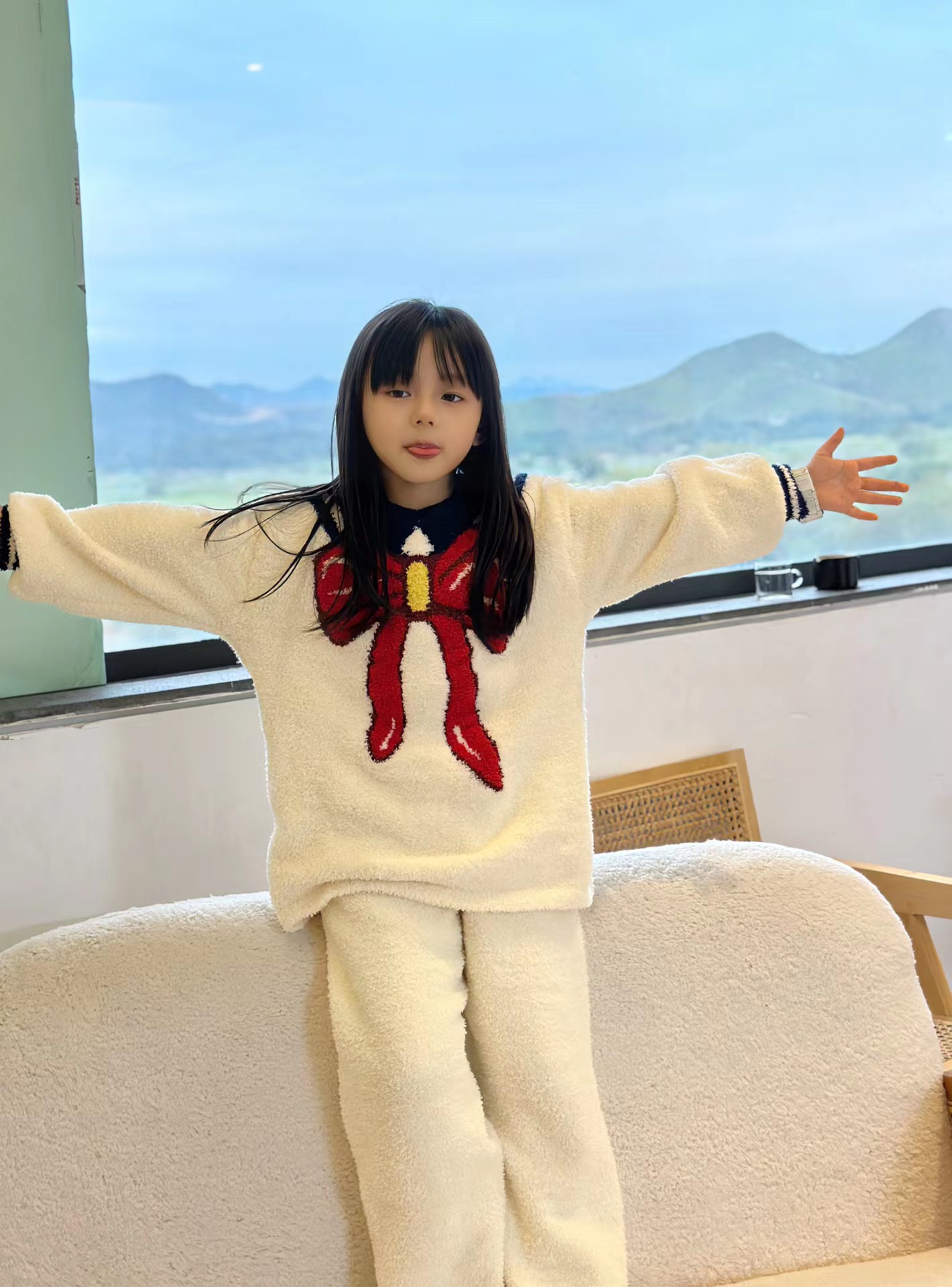 가을과 겨울 새로운 예쁜 소녀 전사 반 벨벳 부모 자식 잠옷 세트 부드러운 따뜻한 겉옷 홈 웨어