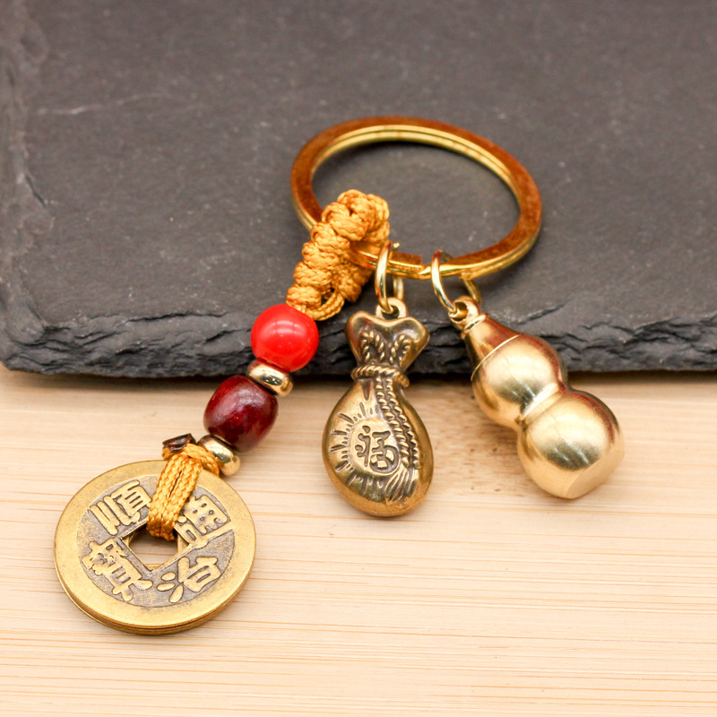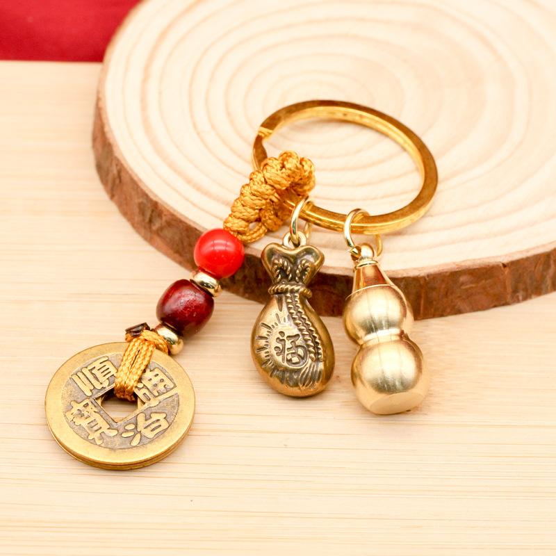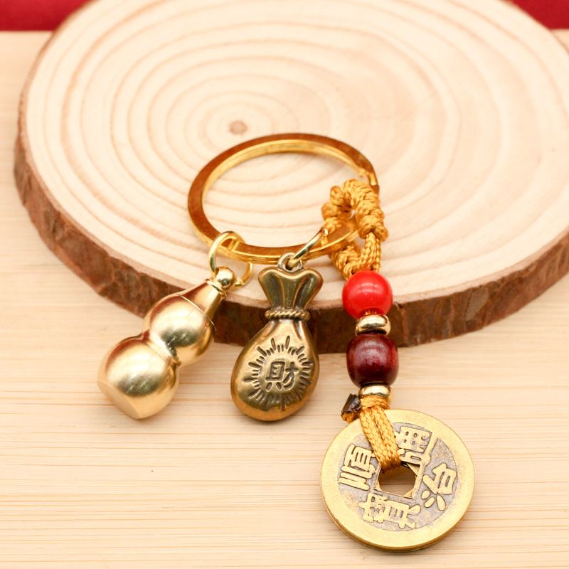 황동 자산 돈 가방 5 황제 돈 속이 빈 조롱박을 설치할 수 있습니다 cinnabar 키 체인 키 체인 제조 업체 도매 세대스토어 가기