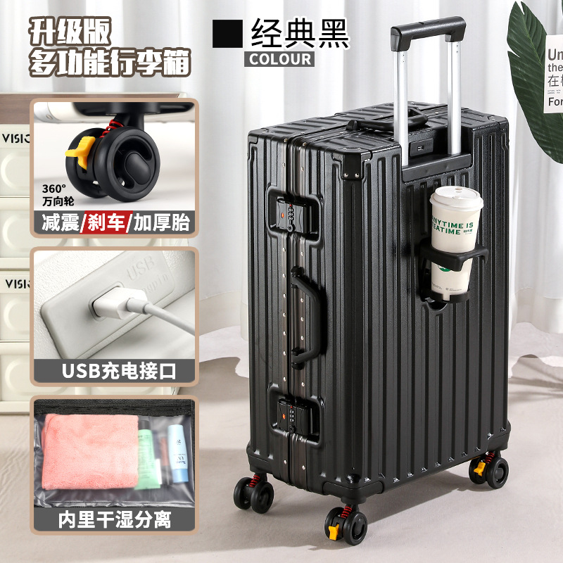 여성용 고급 수하물 26 남성용 강력한 내구성 두꺼운 트롤리 케이스 24 인치 여행 탑승 암호 케이스 가죽 케이스