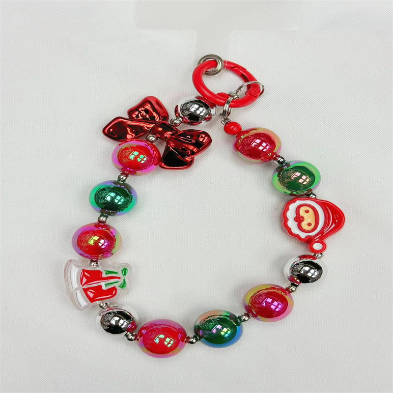 에 크리스마스 휴대 전화 끈 산타 클로스 수제 구슬 가방 키 체인 이어폰 케이스 휴대 전화 체인 여성스토어 가기