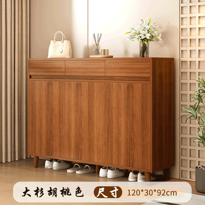 中式鞋柜入户门门口家用靠墙一体储物玄关柜简约现代室内多层鞋架