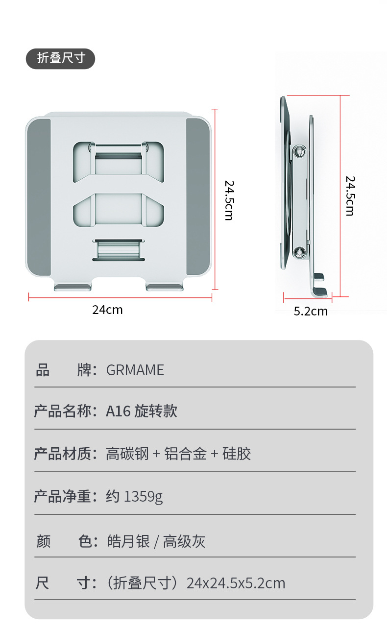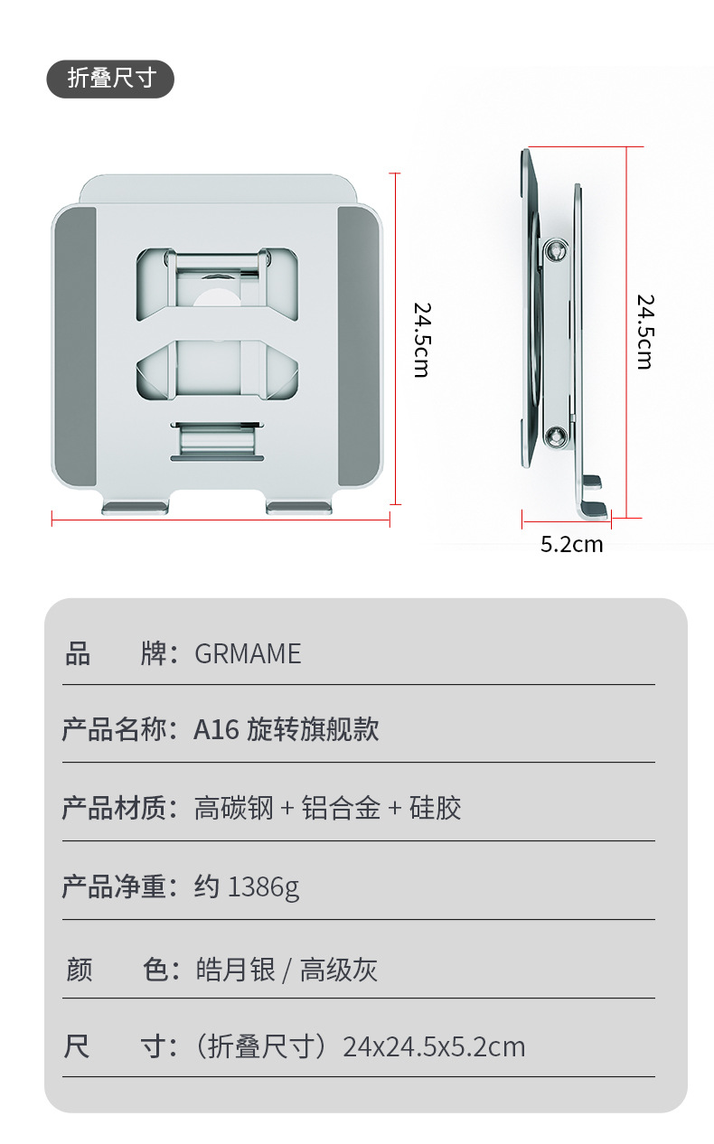 收纳尺寸:250*238*52MM 包装尺寸:28*24.5*6CM 净重:1388G
