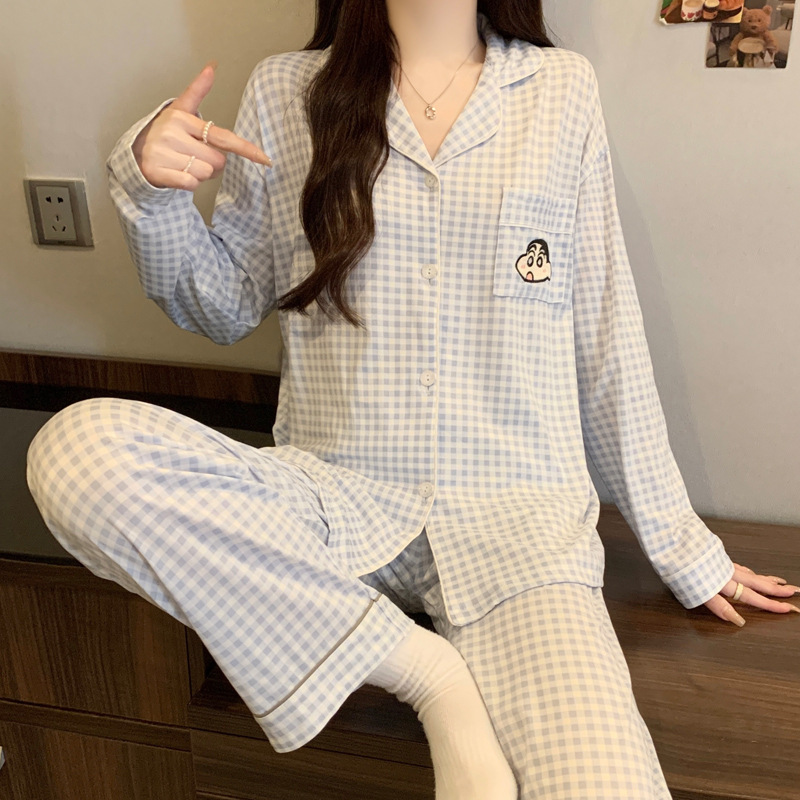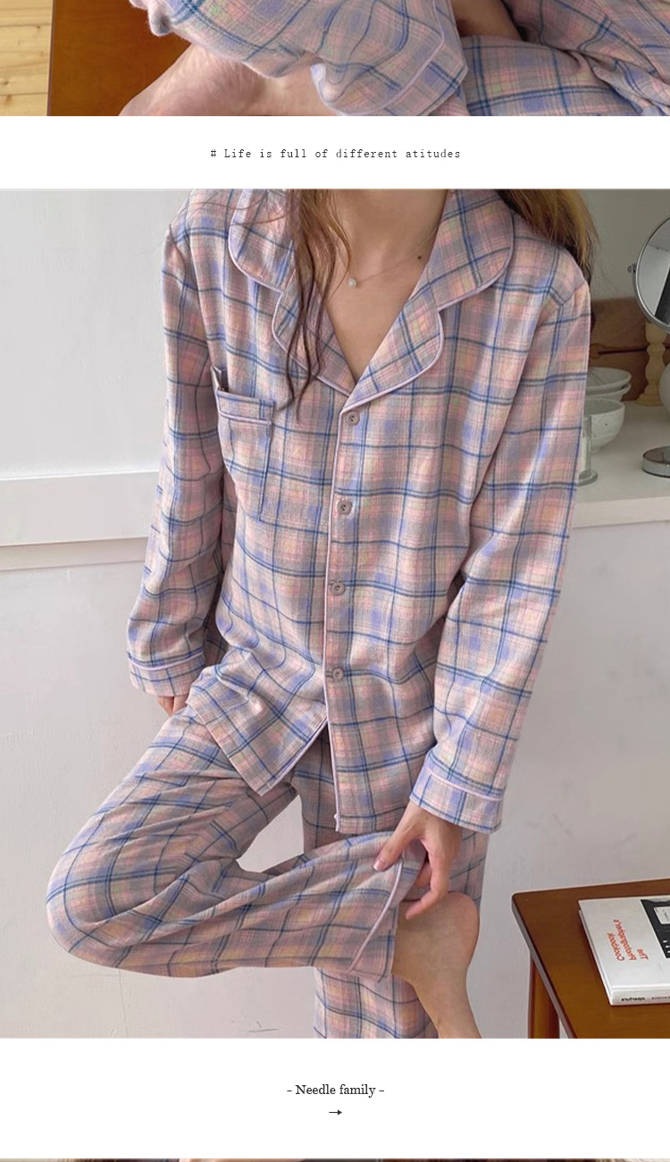심플한 캐주얼 소녀의 외출용 잠옷, 가을 얇은 라펠 가디건, 홈웨어 세트, 실물 사진 도매
